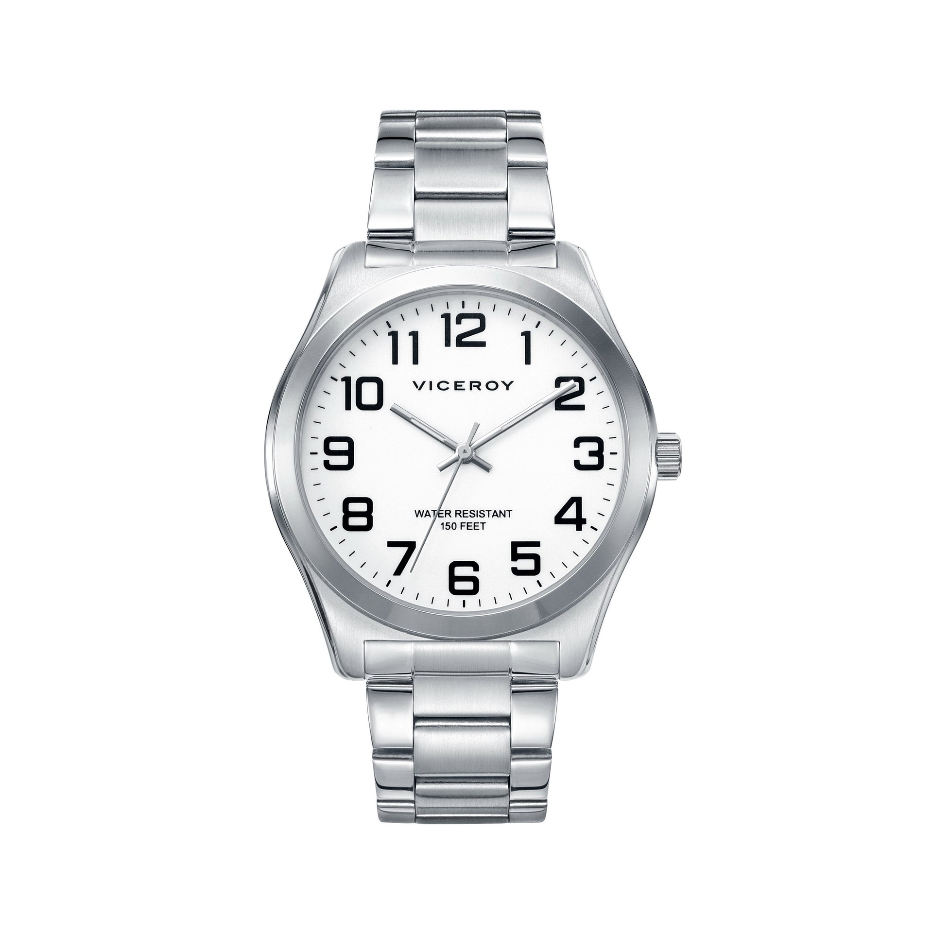 Reloj de acero con esfera blanca y cronógrafo en negro