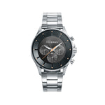 Reloj caja de acero Ip gris 5 atm y malla milanesa de acero Ip gris con movimiento cuarzo