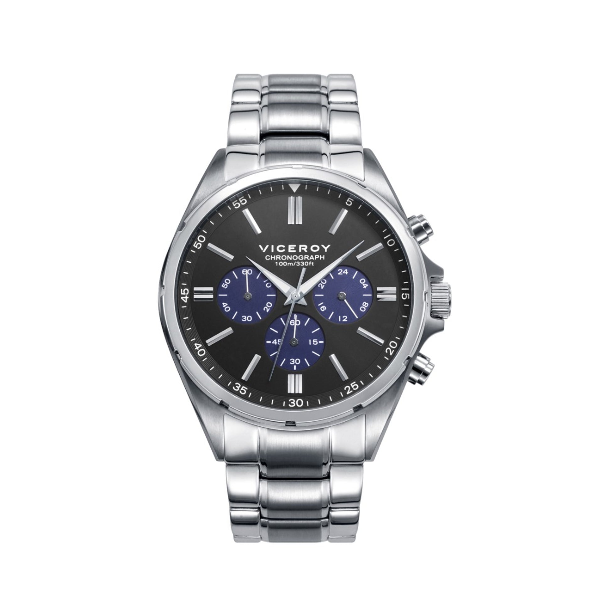 Reloj para hombre en acero con esfera negra con cronógrafo