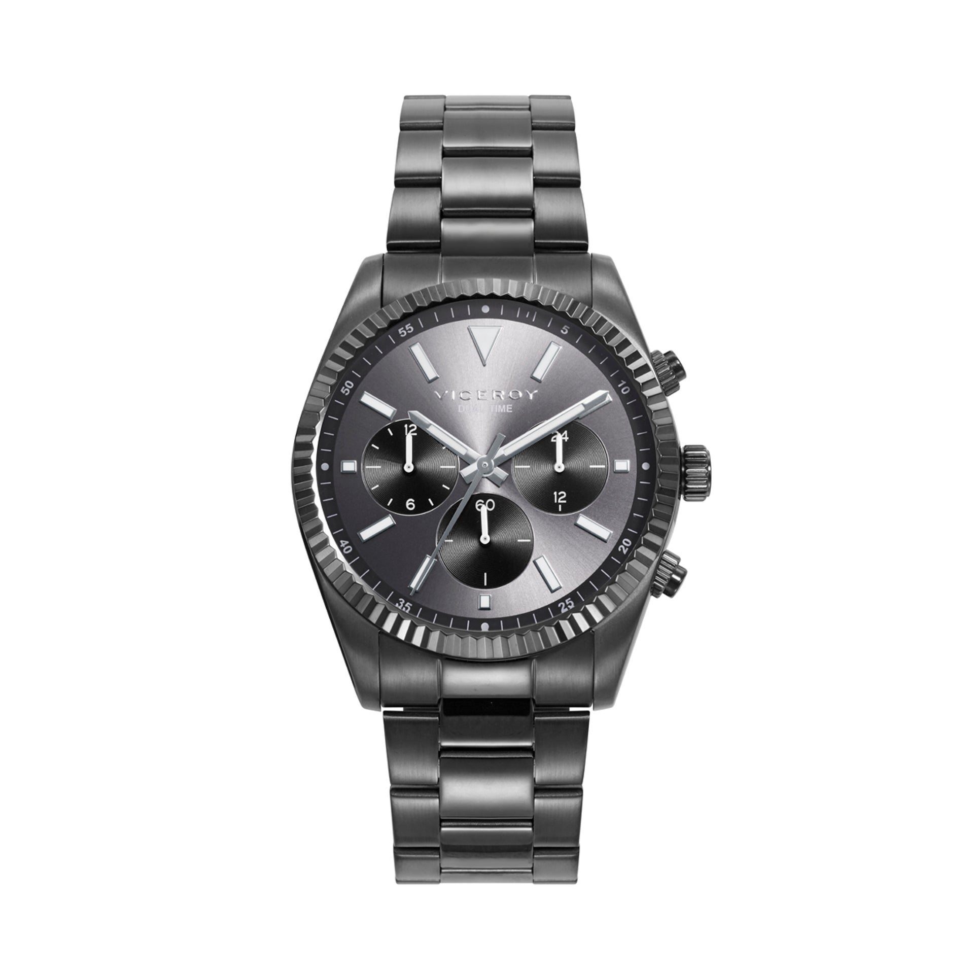 Reloj caja de acero Ip gris 5 atm y malla milanesa de acero Ip gris con movimiento cuarzo