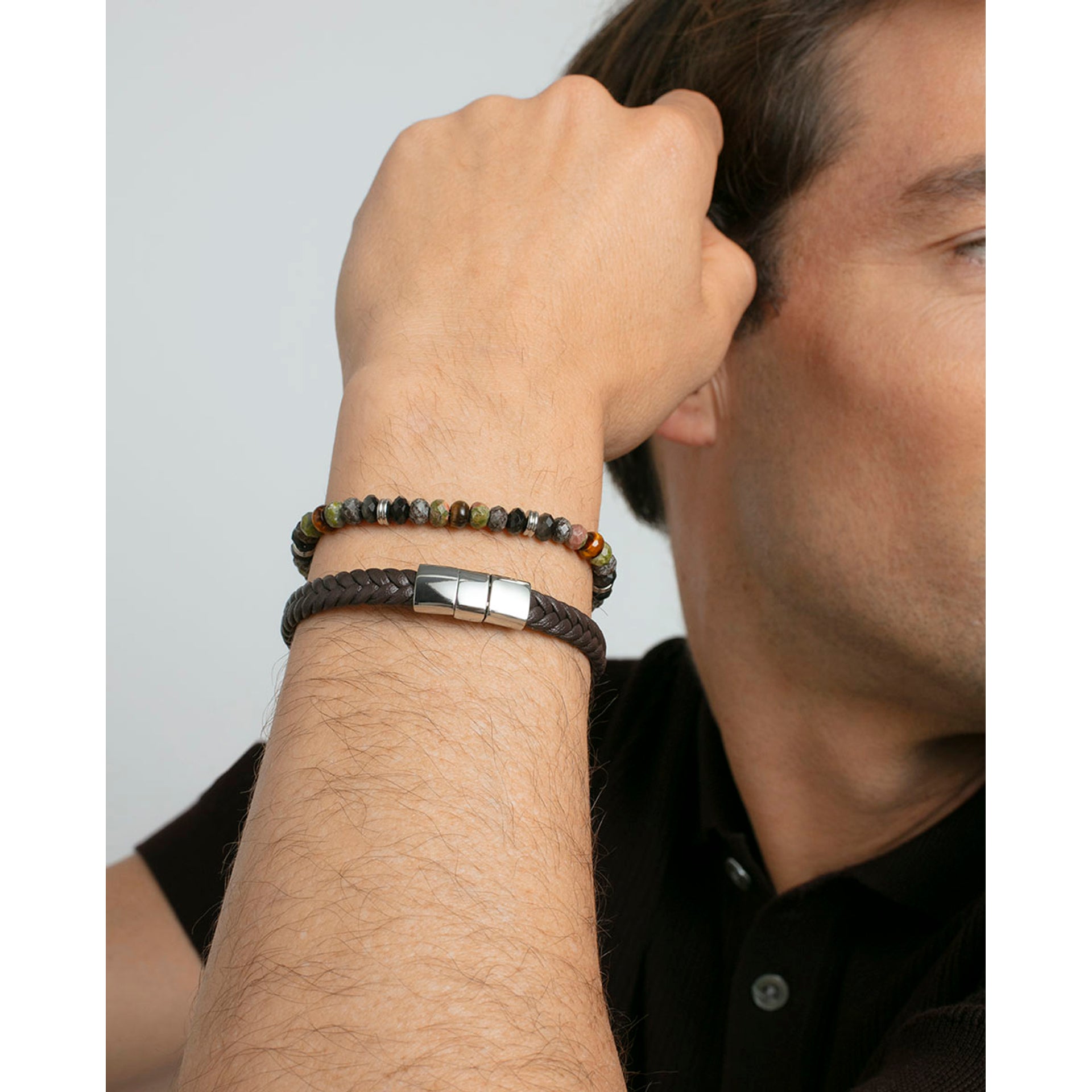 Pulsera de hombre Air de piel doble marrón trenzada y acero