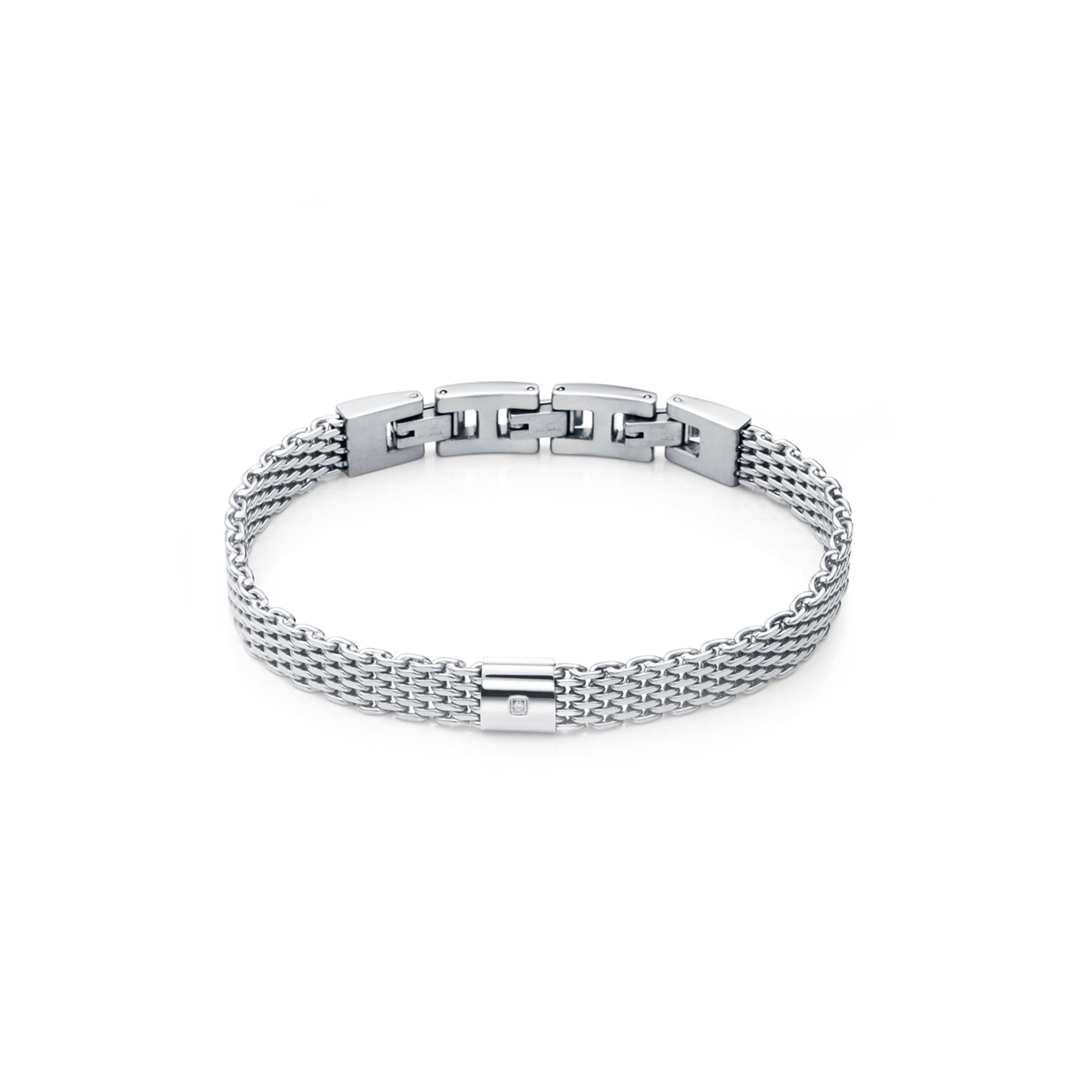 Pulsera de hombre Beat de acero con placa y cordón multicolor