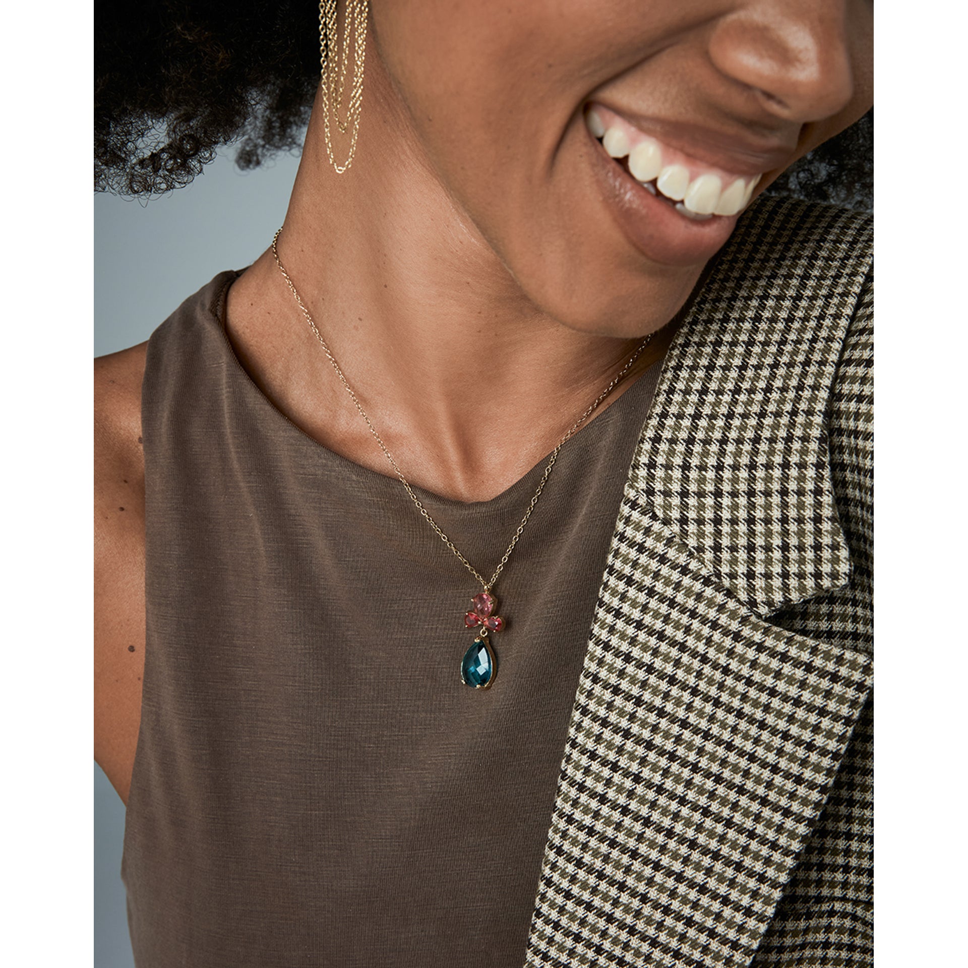 Collar de mujer de acero Ip dorado con piedras de rubíes naturales