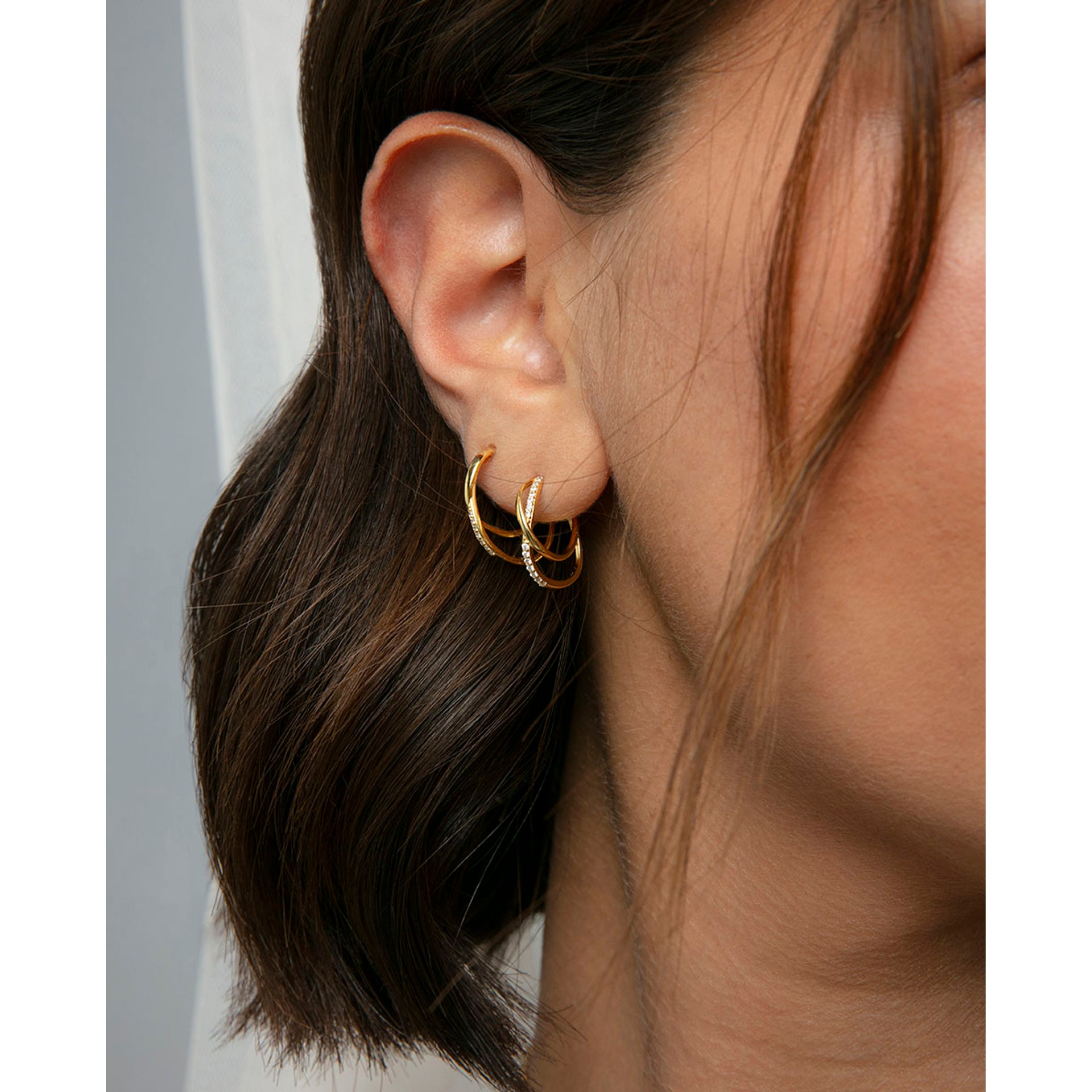Pendientes de plata de primera ley con baño de oro, aro abierto triple con circonitas