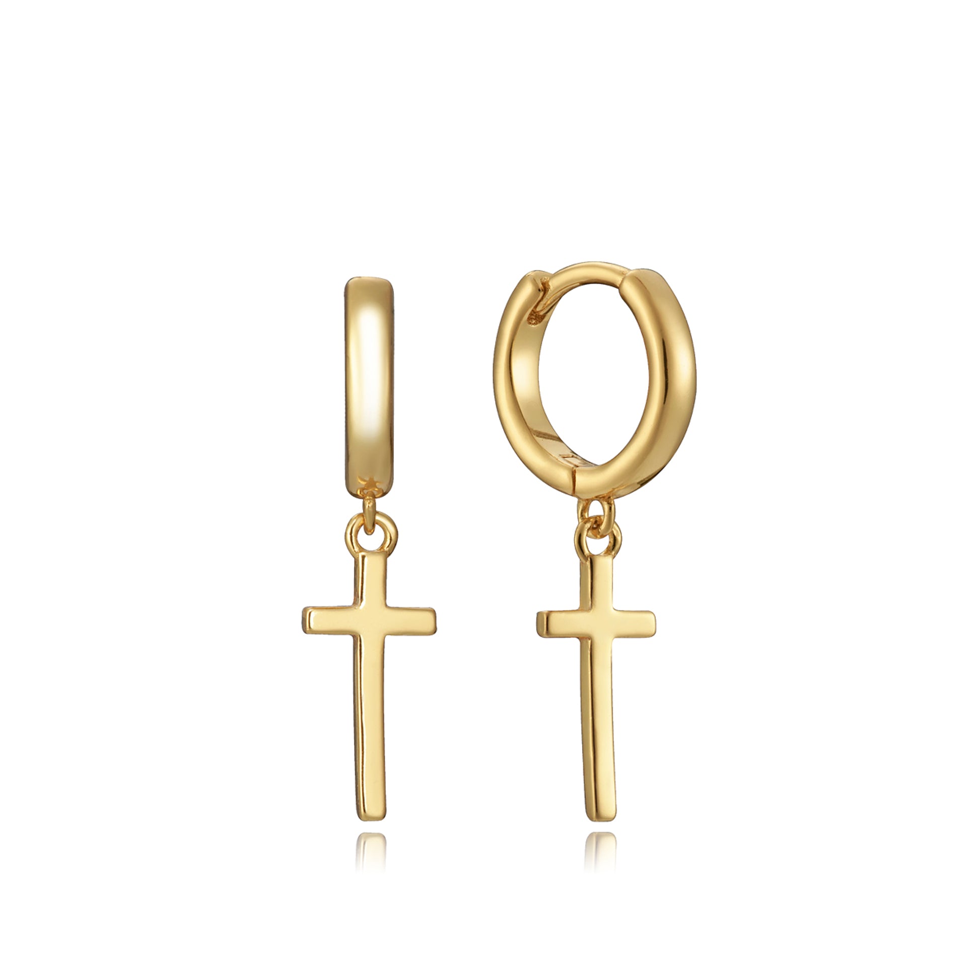 Pendientes Trend de plata de ley con baño de oro y colgante de cruz