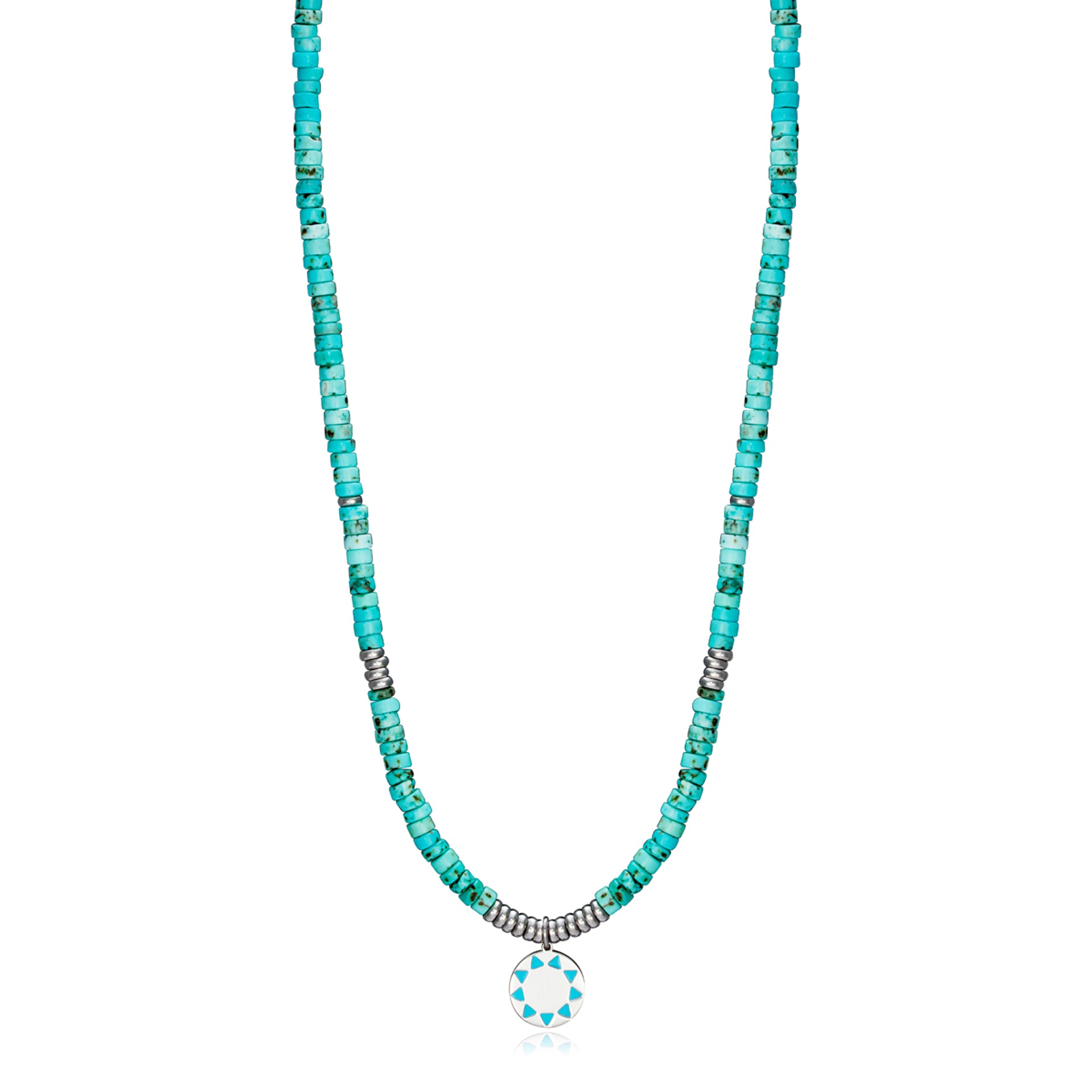 Collar Trend de plata de ley con baño de oro y cuentas de cristal en multicolor y circonita