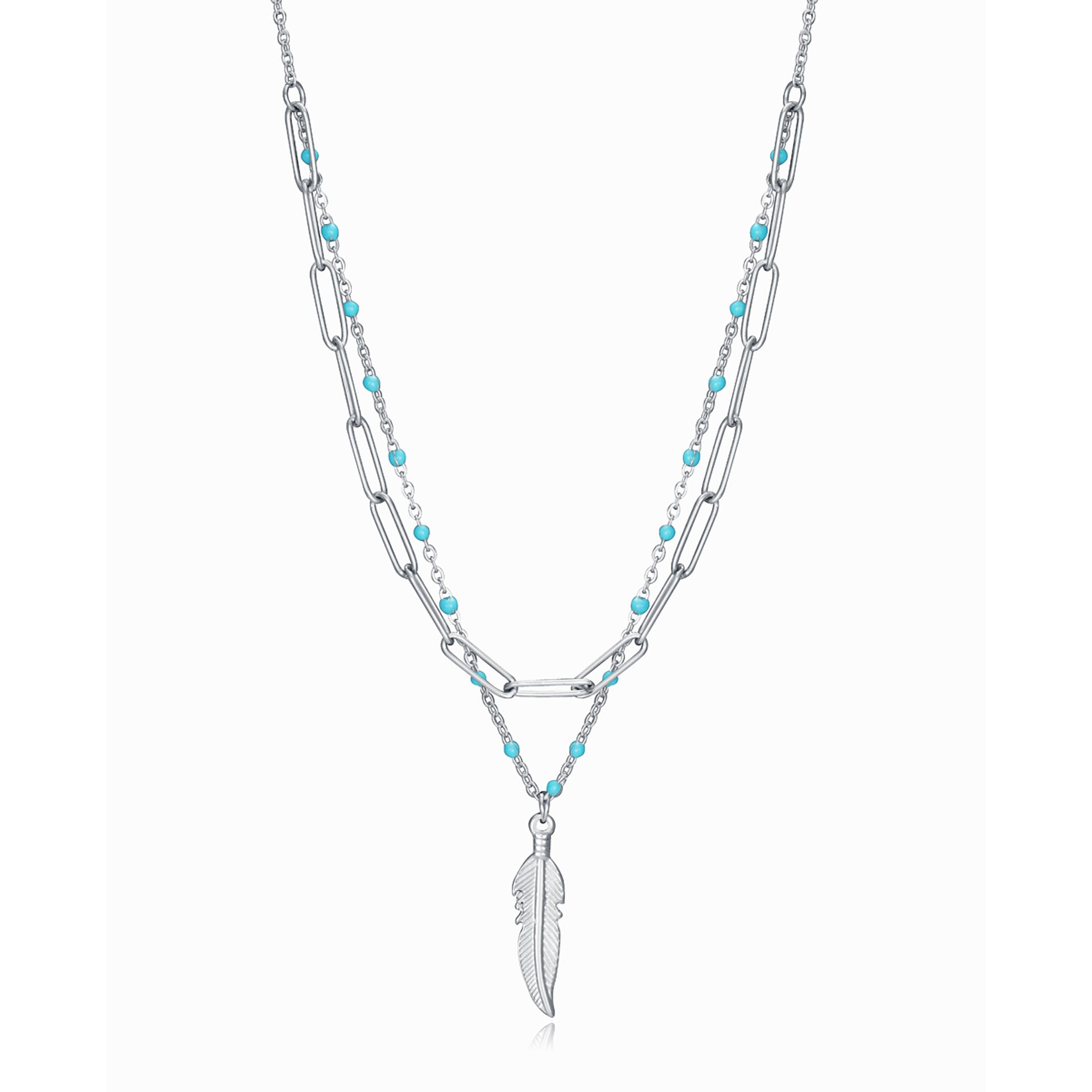 Collar Elegant de plata de ley con baño de oro con dos cadenas y disco con circonitas