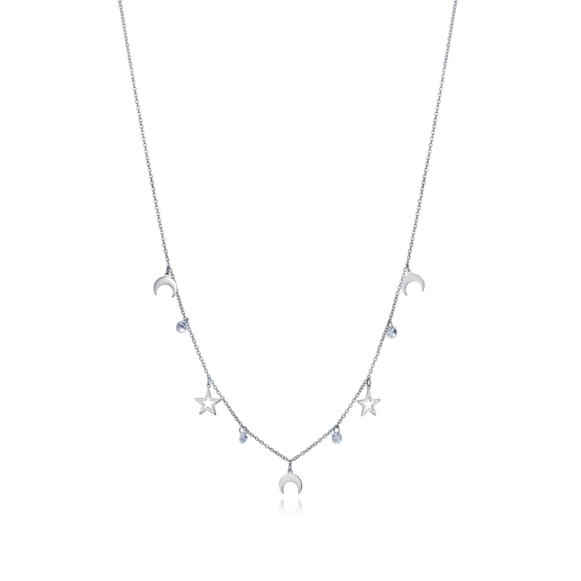 Collar Kiss de acero con estrellas y lunas y circonitas