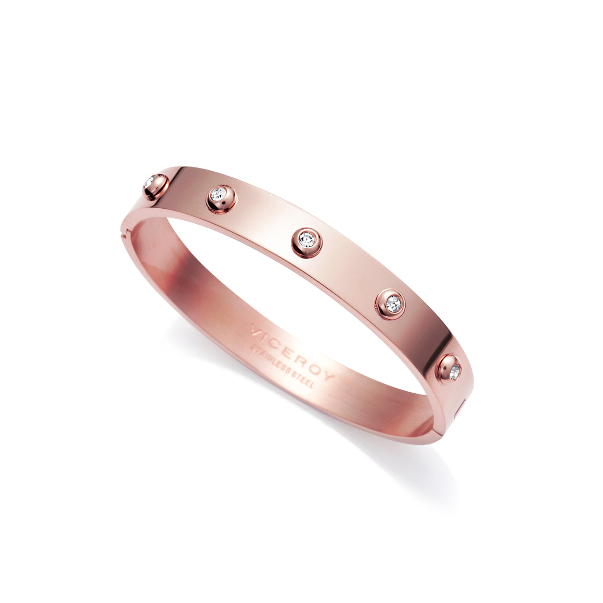 Brazalete Air de acero rosado y circonitas con apertura lateral
