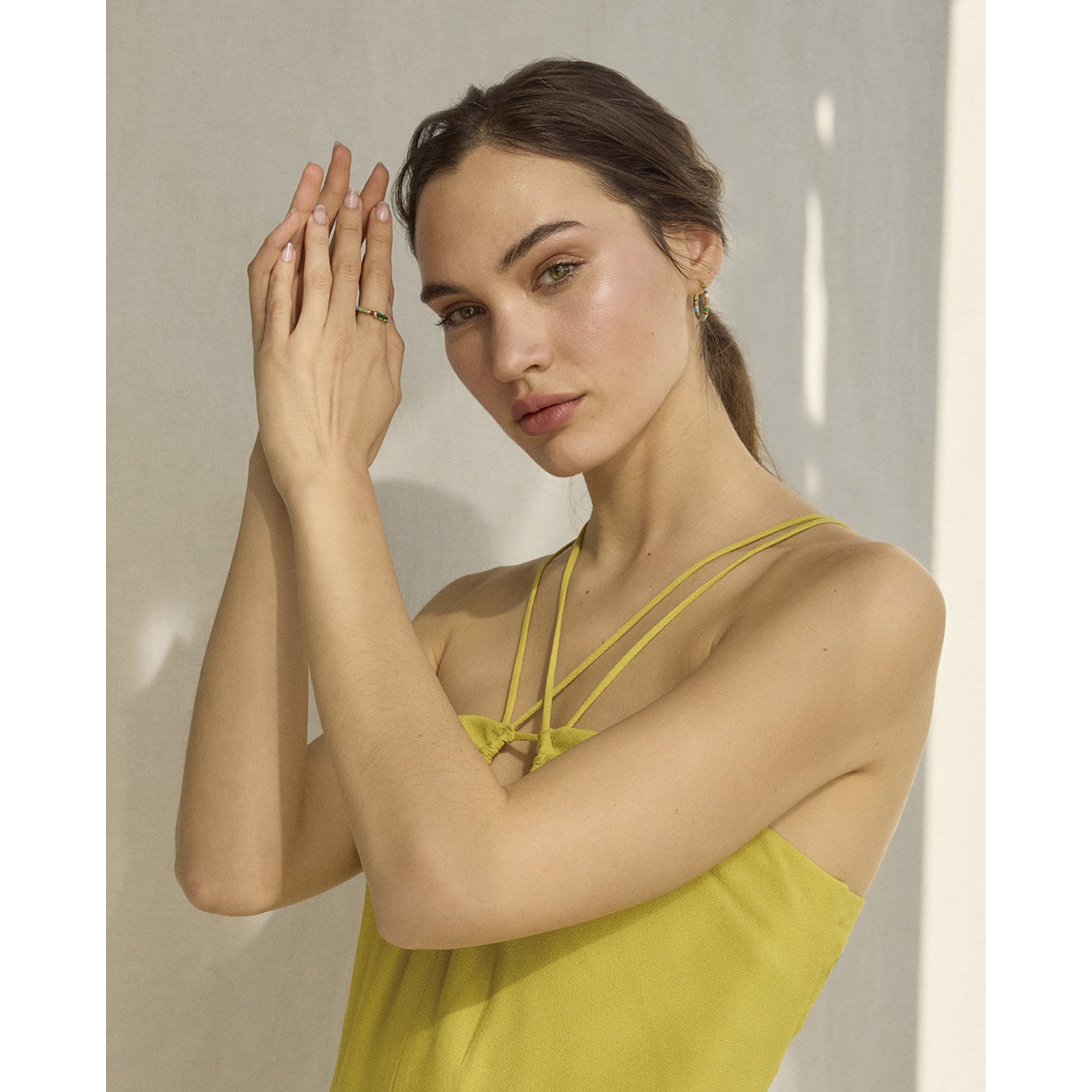 Anillo Clásica de plata de ley con baño de oro y fila de circonitas de color amarillas