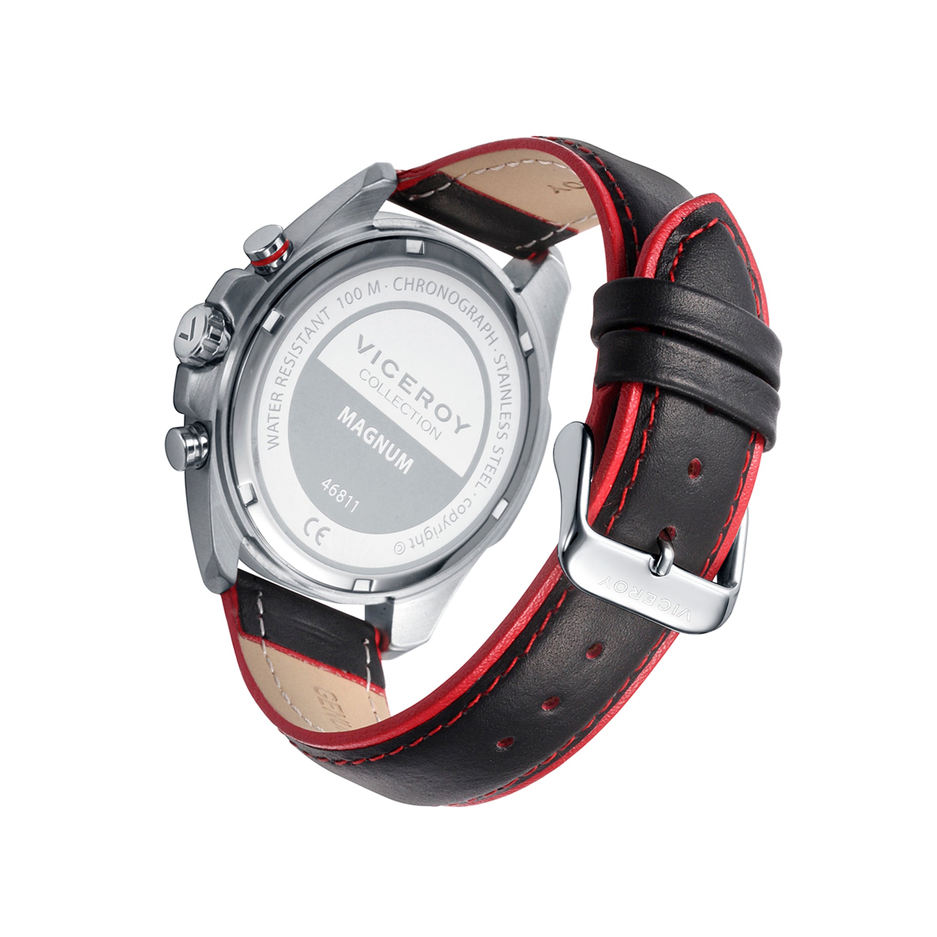 Magnum Herrenuhr mit Stahlgehäuse und schwarzem Lederarmband