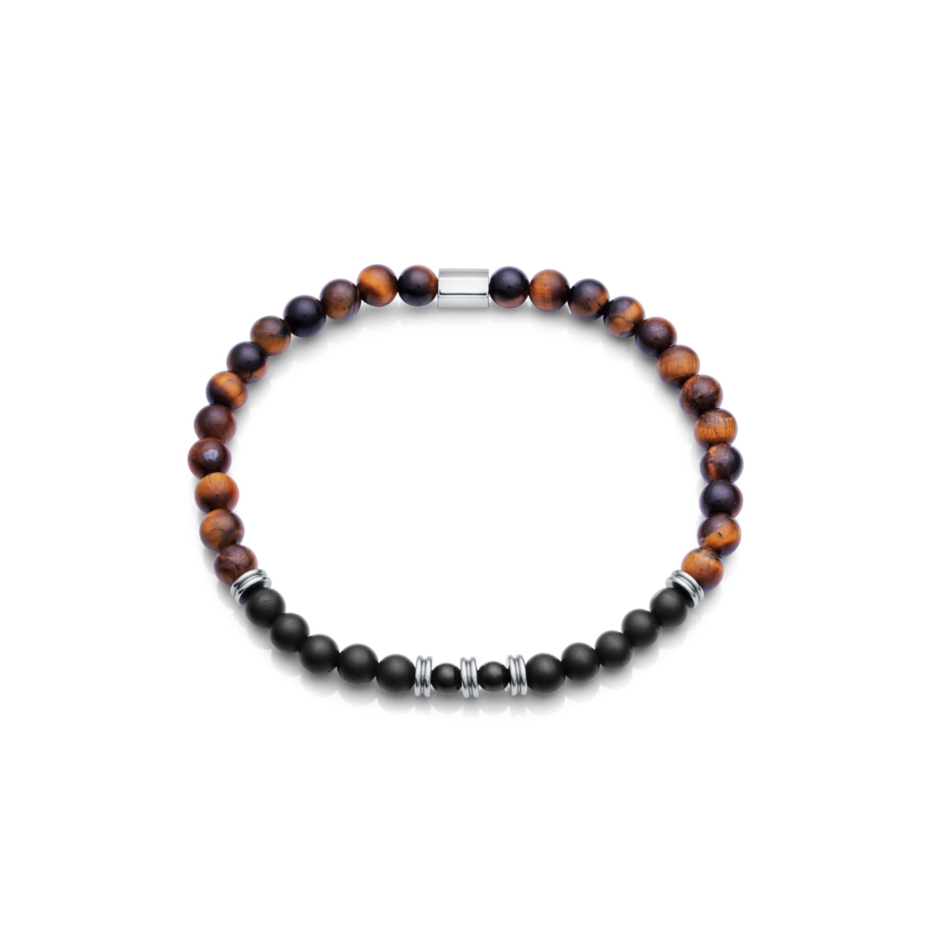 Beat Herren-Stahlarmband mit Tigerauge und schwarzem Achat
