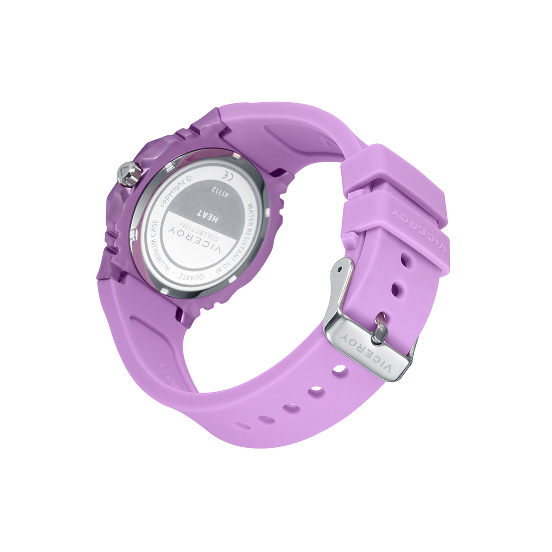 Damenuhr mit Aluminiumgehäuse und lila Silikonarmband