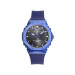 Uhr mit blauem Aluminiumgehäuse und blauem IP-Stahl-Lünettenring, 5 atm, blaues Silikonarmband, Quarzwerk
