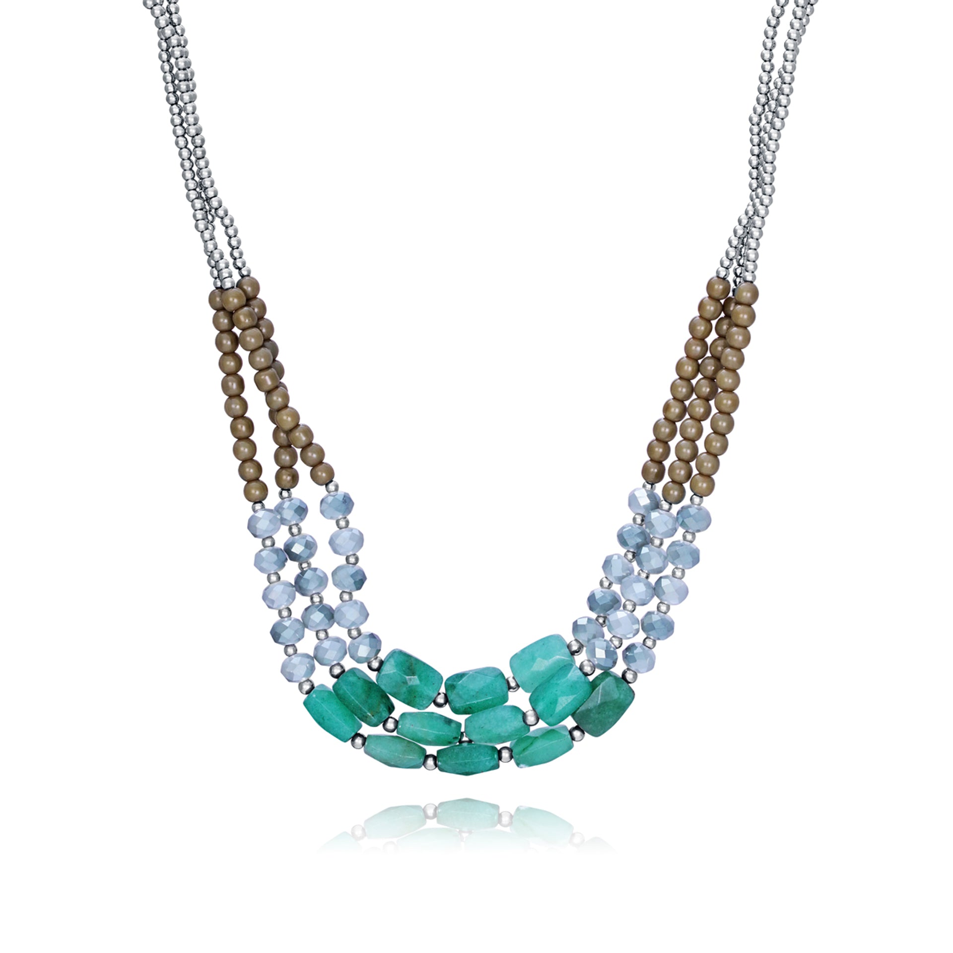 Schicke Halskette aus Stahl mit Aventurin, Jade und Steinen