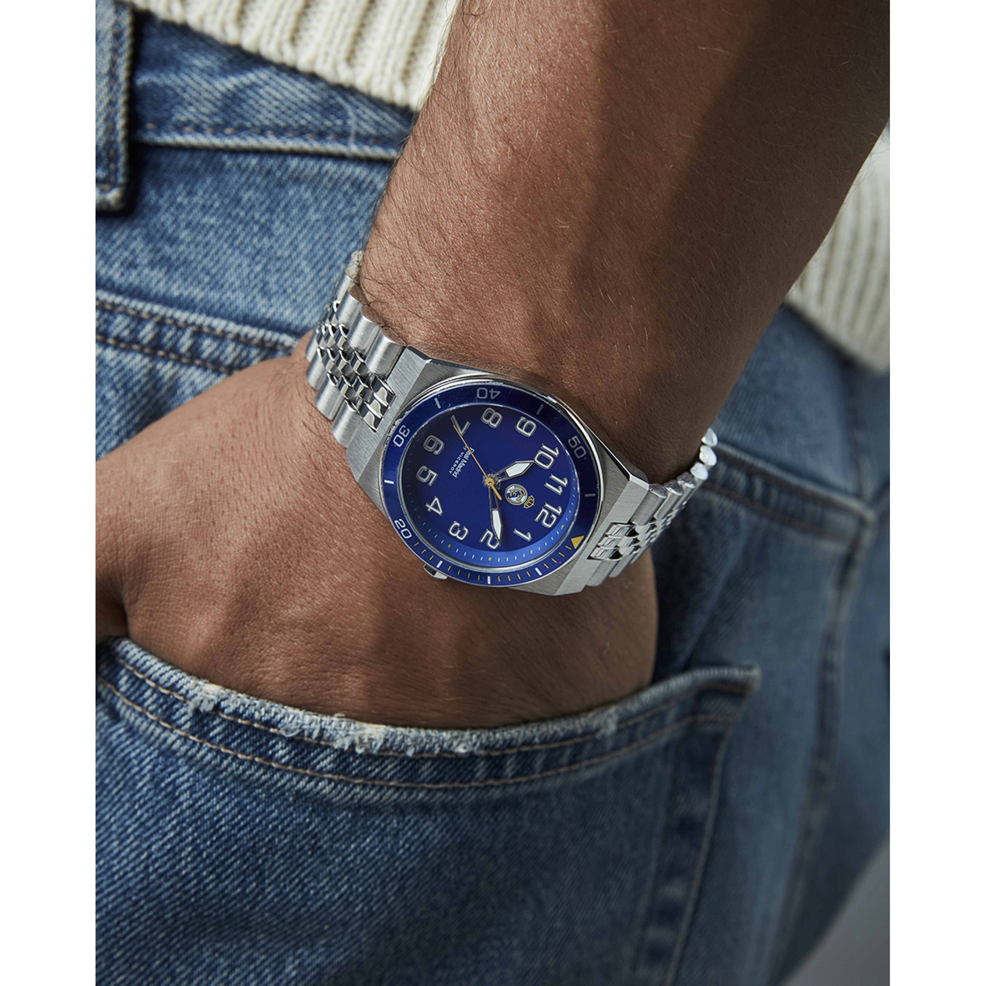 R.Madrid Kadettenuhr mit Stahlgehäuse und Stahlarmband