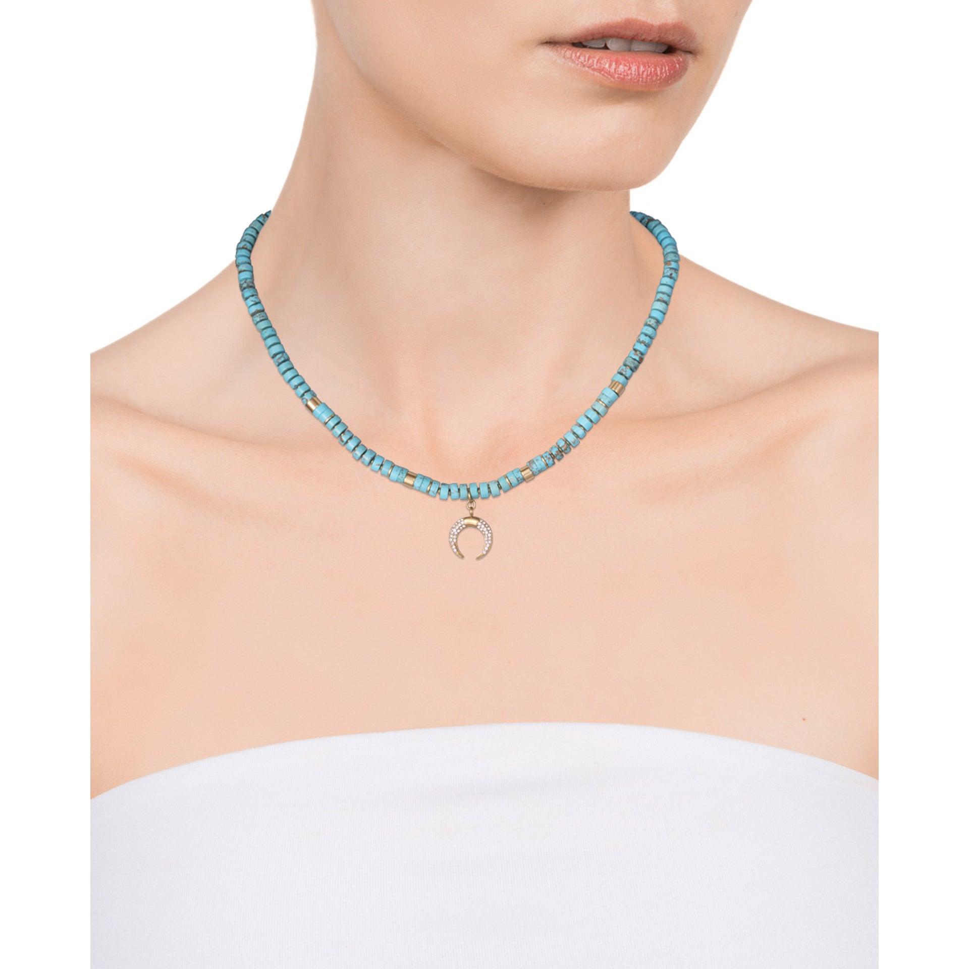 Schicke Halskette aus goldenem Ip-Stahl und Steinen mit türkisfarbenem Natursteinanhänger
