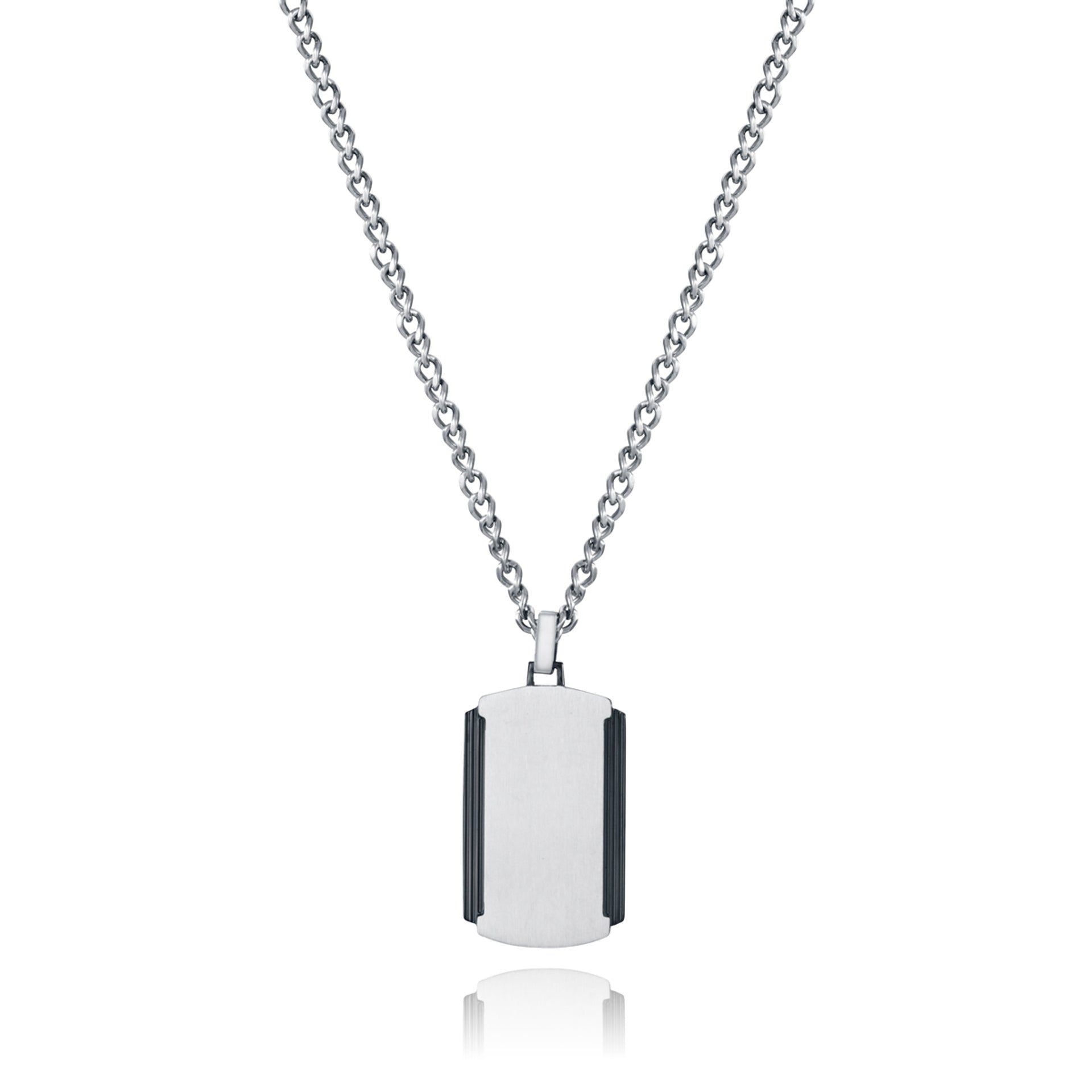Herren-Halskette aus Stahl mit schwarzem Ip-Titanplatten-Anhänger