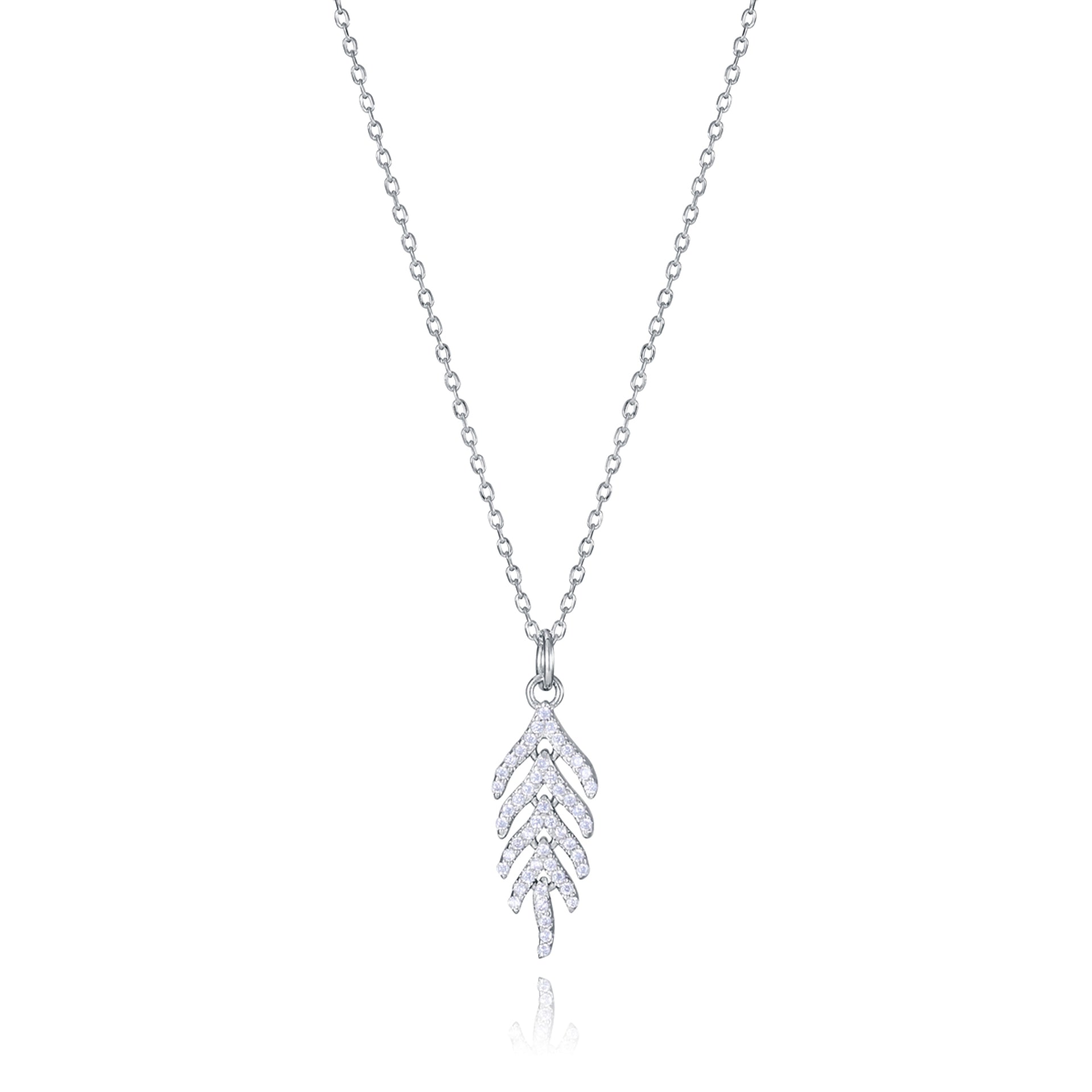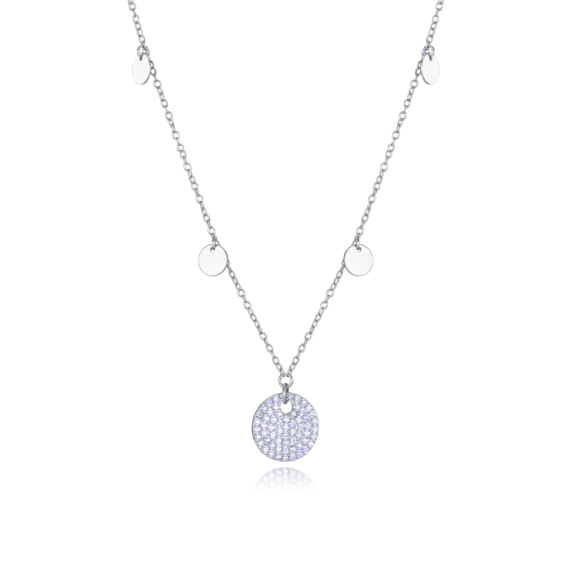 Elegante Halskette aus rhodiniertem Sterlingsilber mit Anhängerplatte und weißen Zirkonen