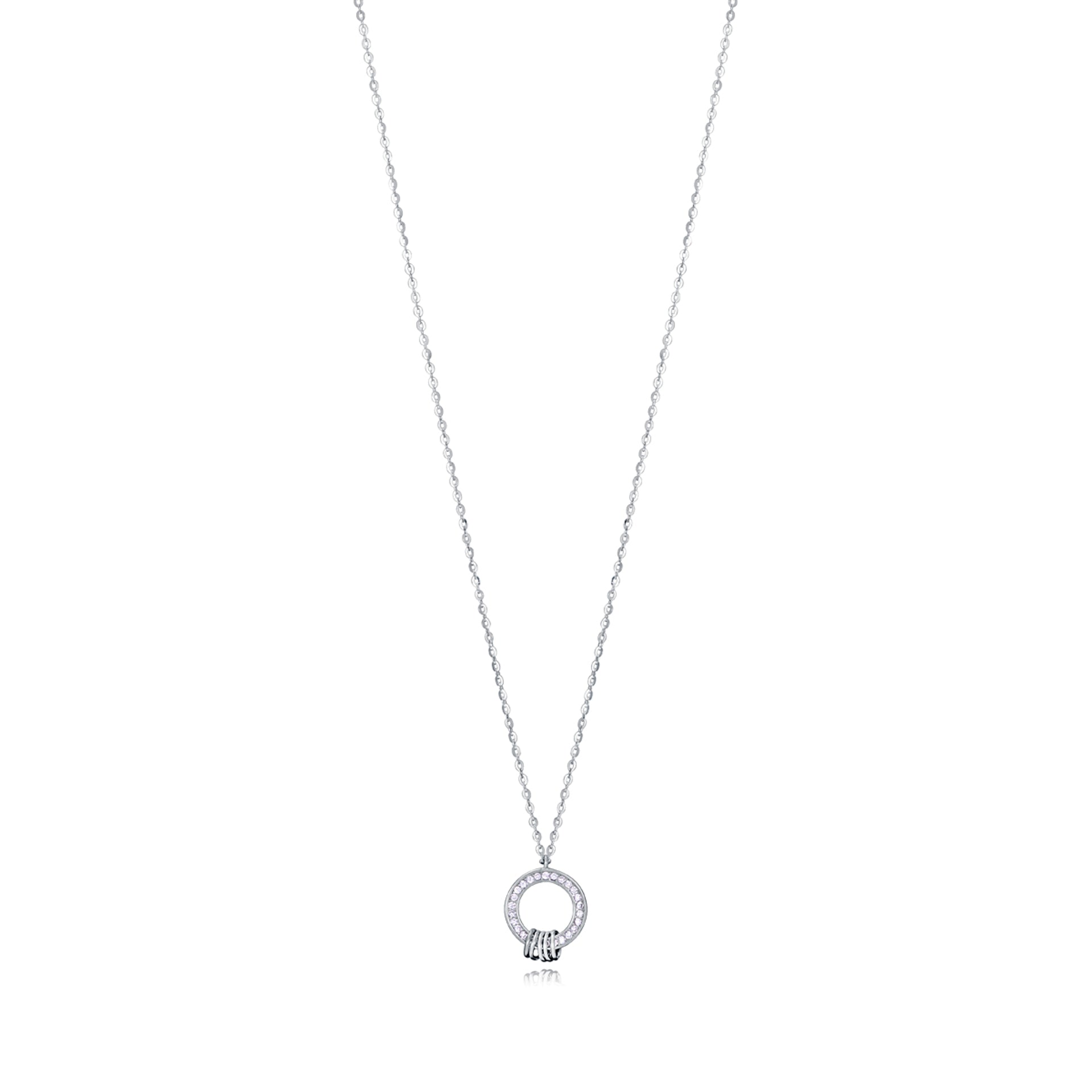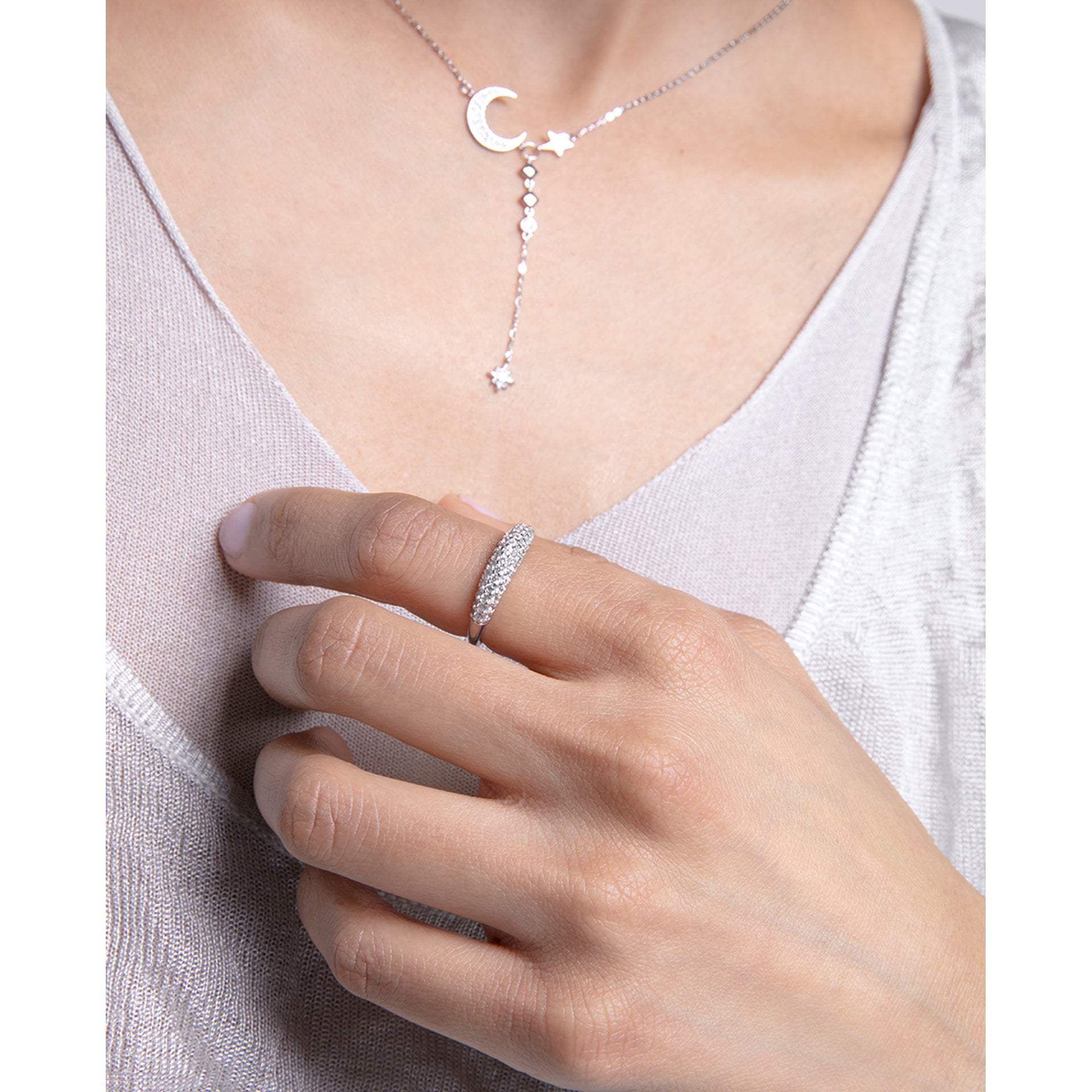 Halskette aus rhodiniertem Sterlingsilber mit Ring und Zirkonen