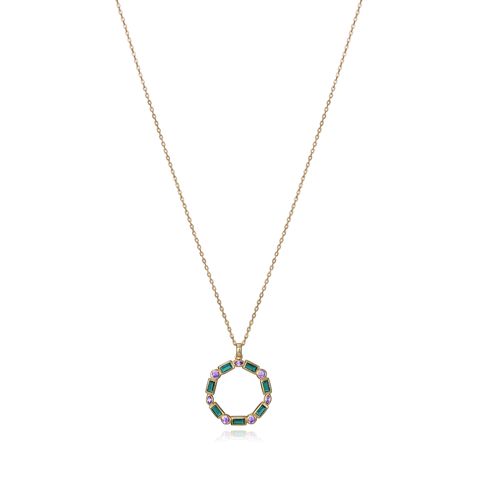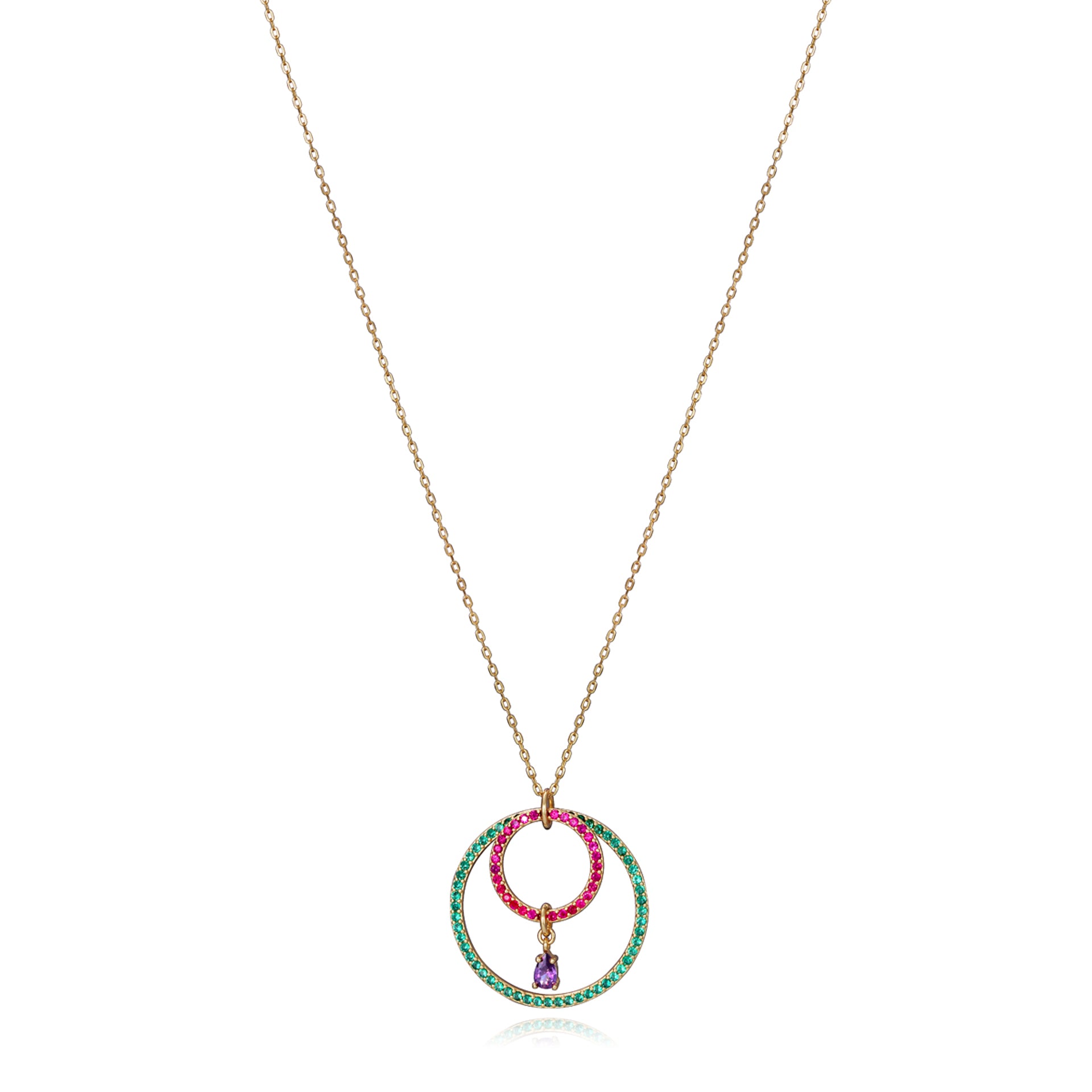 Elegante Halskette aus vergoldetem Silber mit Creolenanhänger mit grünen und violetten Zirkonen