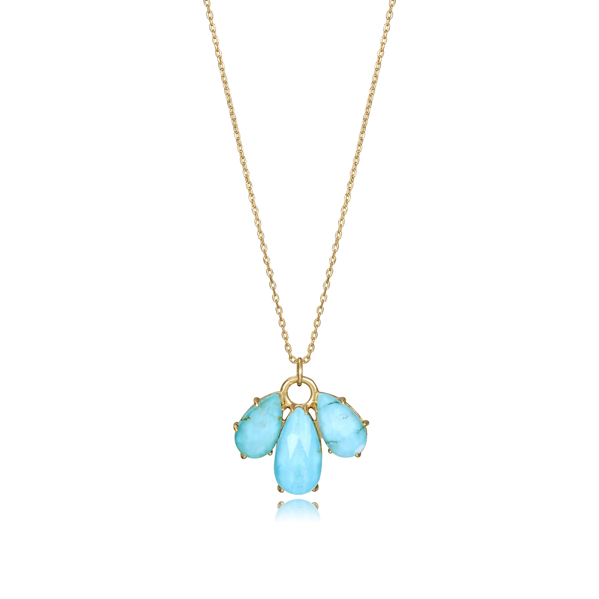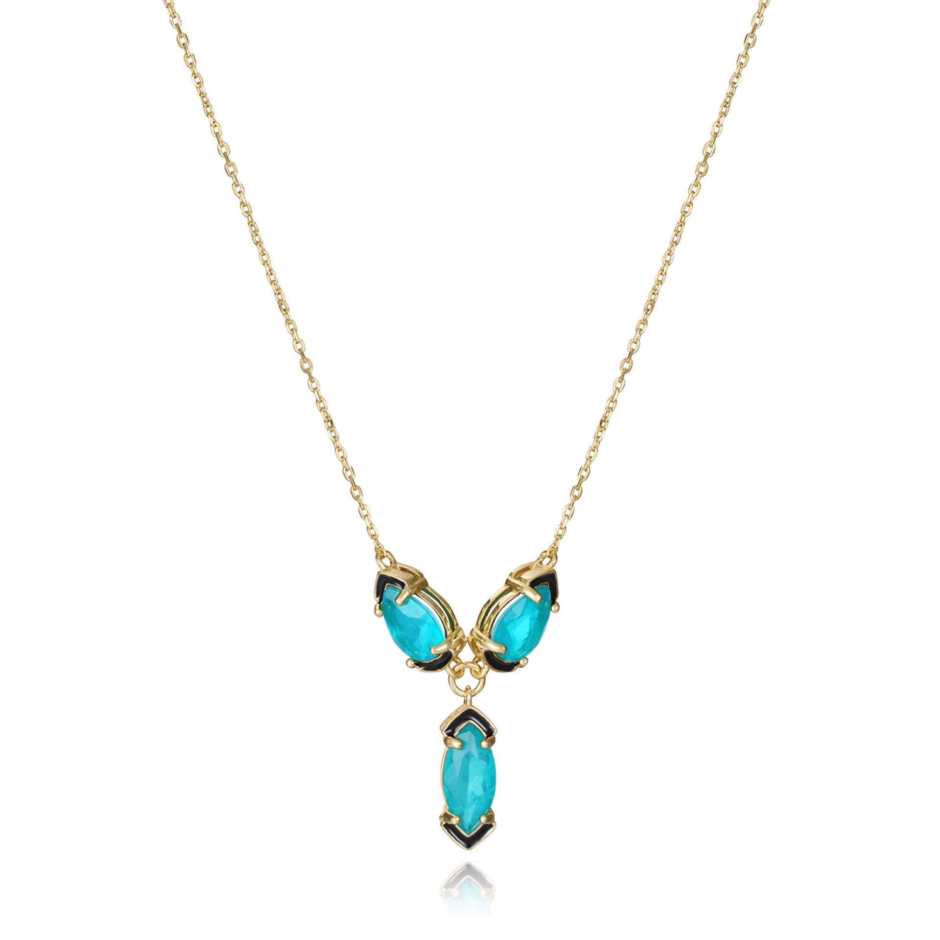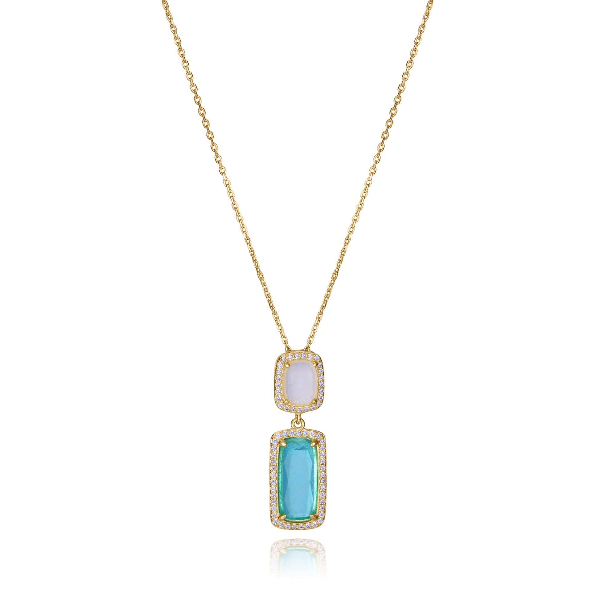Halskette aus vergoldetem Sterlingsilber mit Anhänger aus Türkis und Kristallsteinen