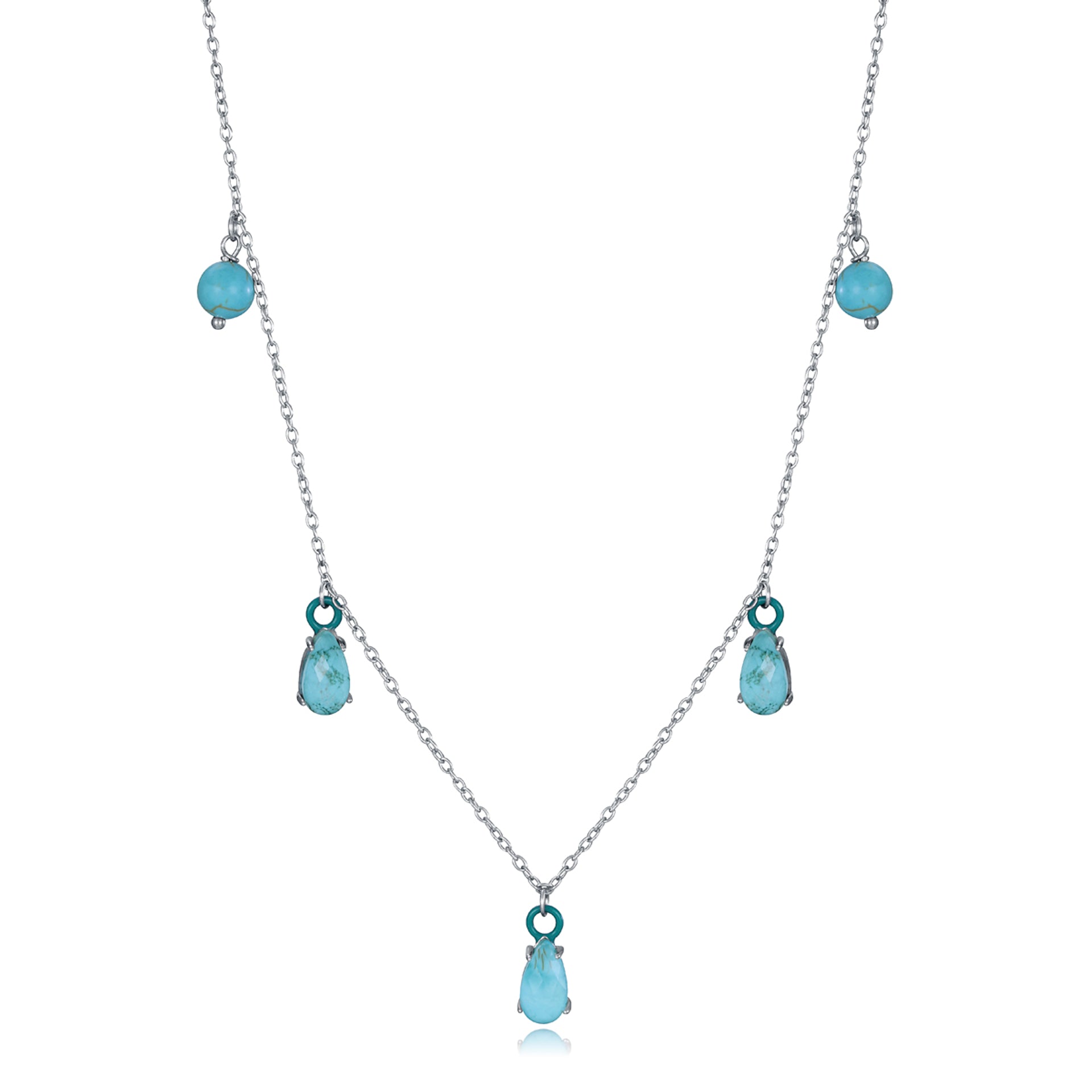 Halskette aus rhodiniertem Sterlingsilber mit Natursteinen