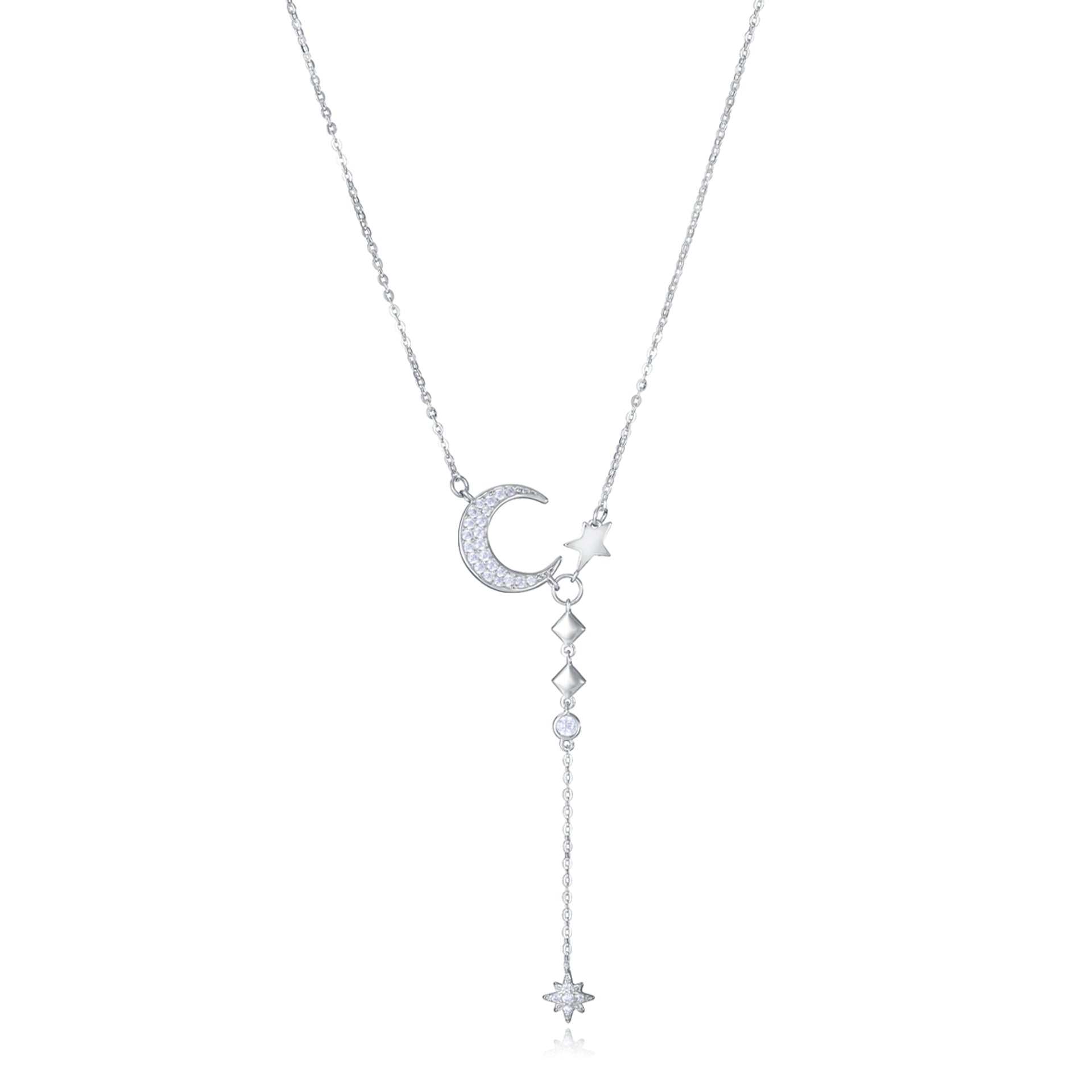Halskette aus Sterlingsilber mit Kette mit Mondmotiv und Sternanhänger mit weißen Zirkonen