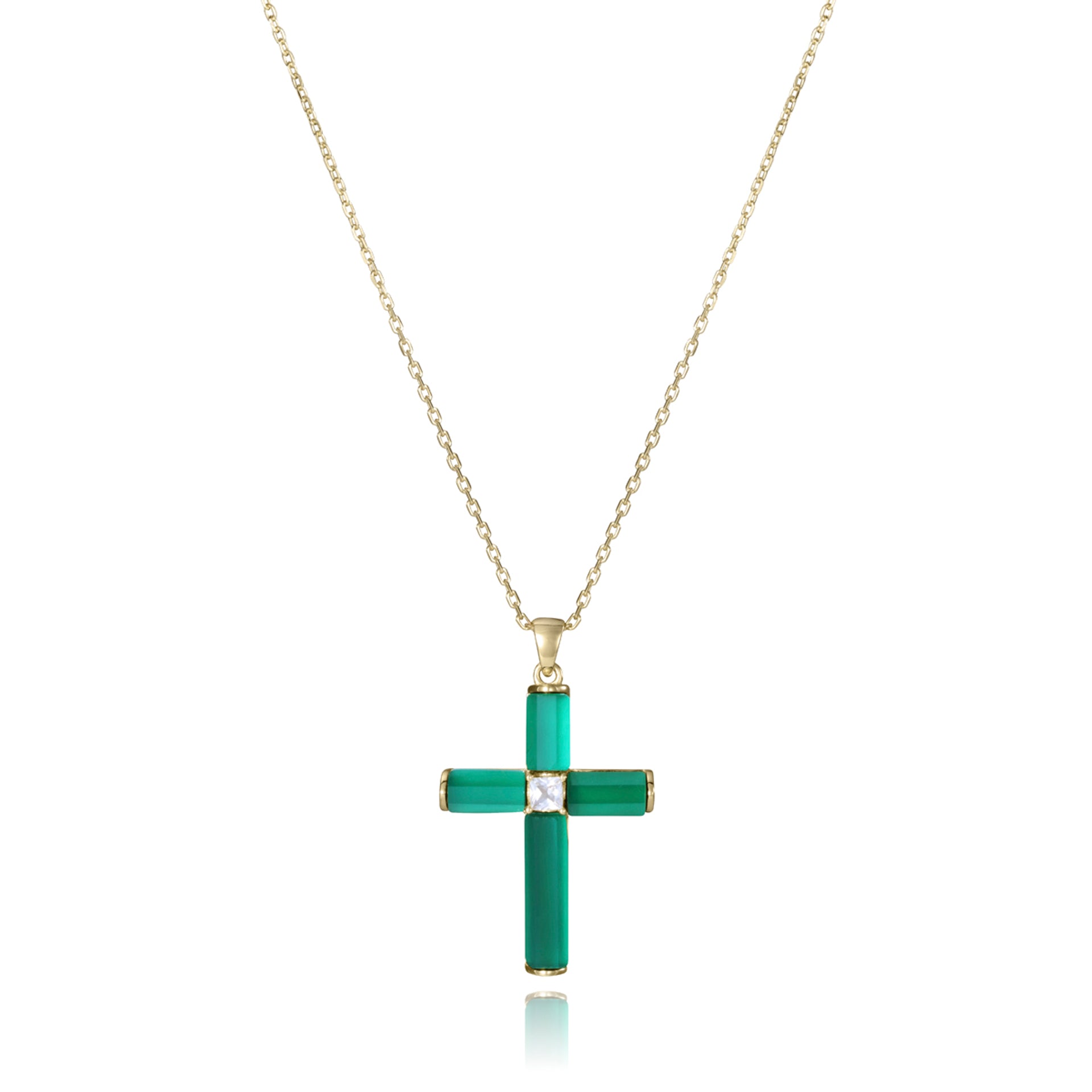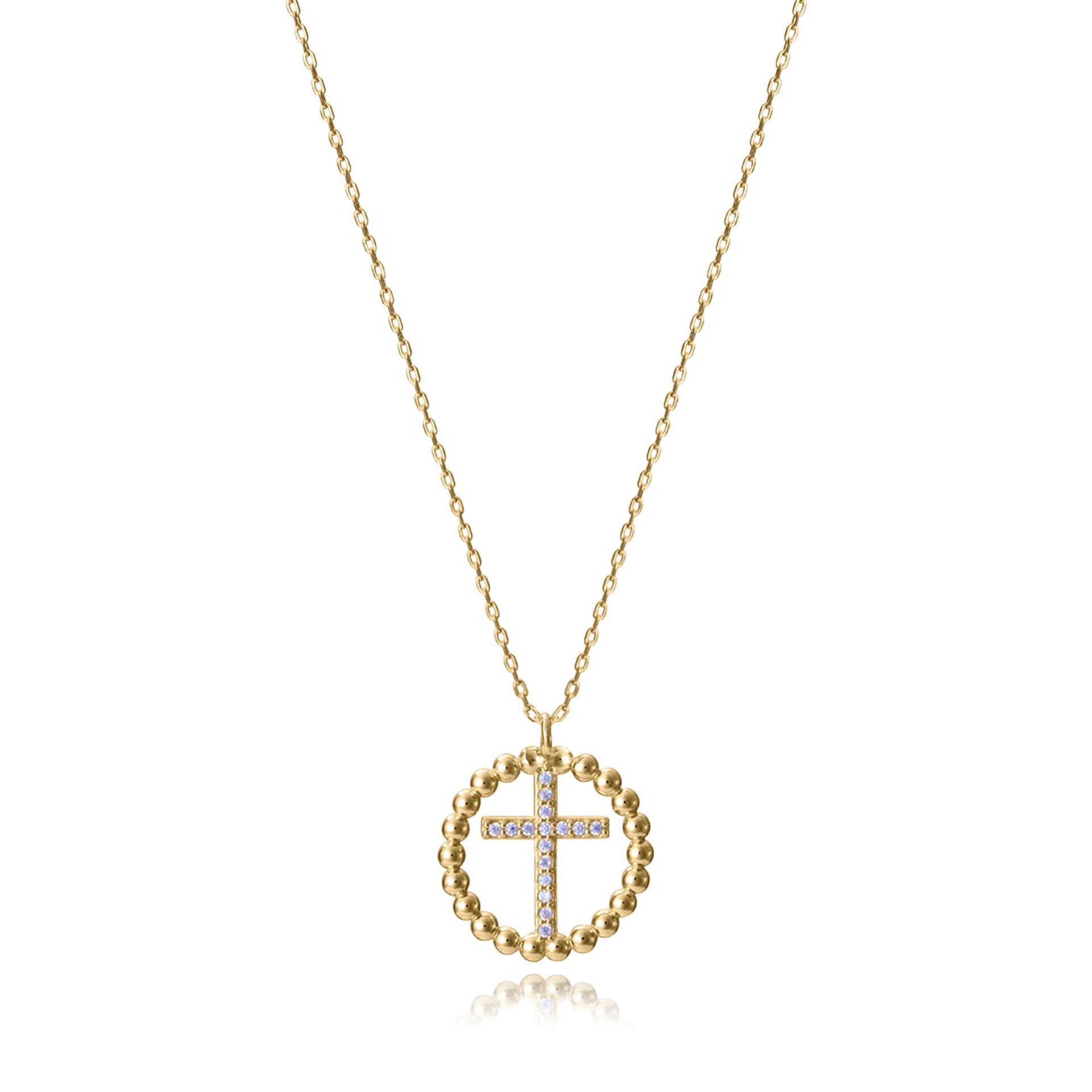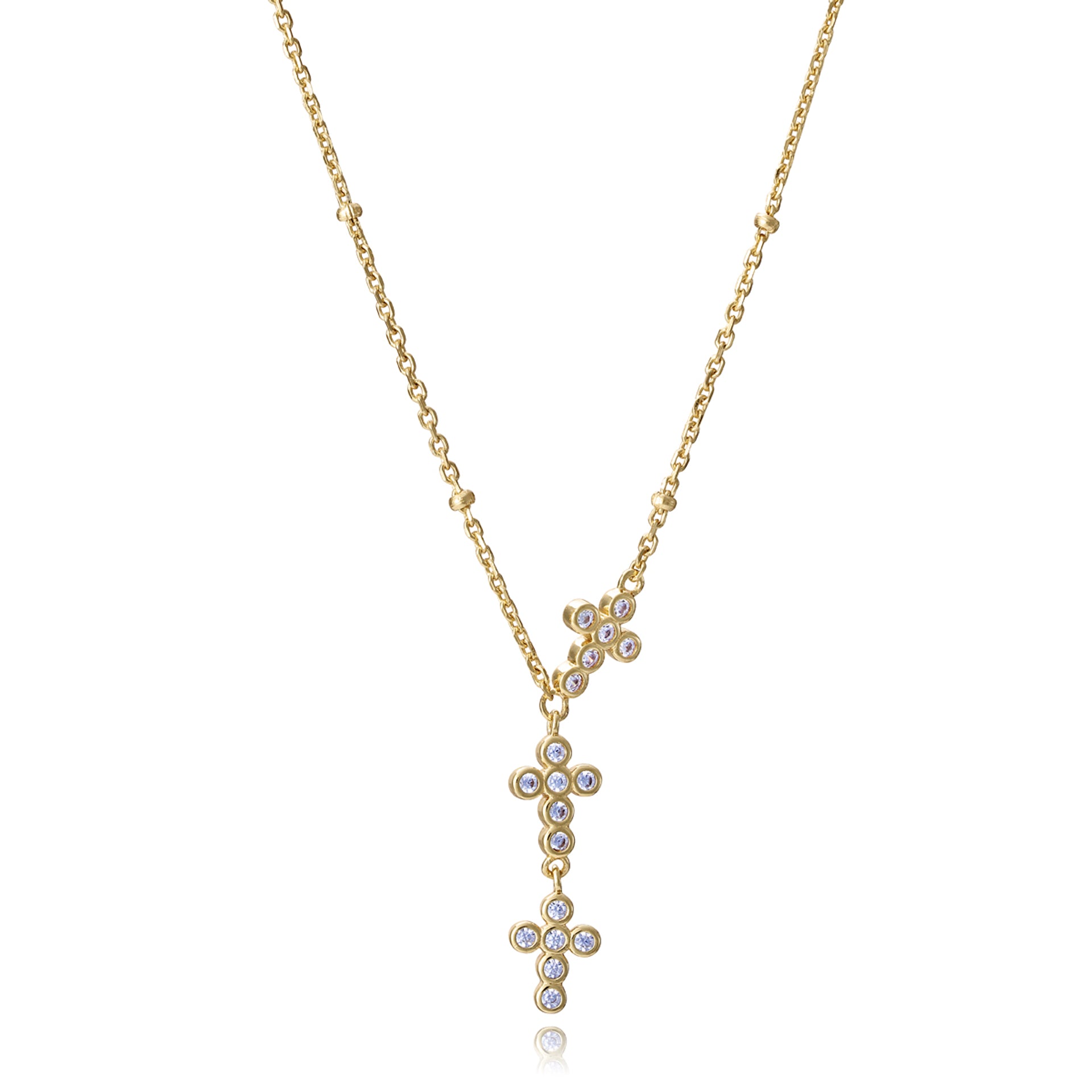 Mädchenhalskette aus vergoldetem Sterlingsilber mit Kreuz und Zirkonen