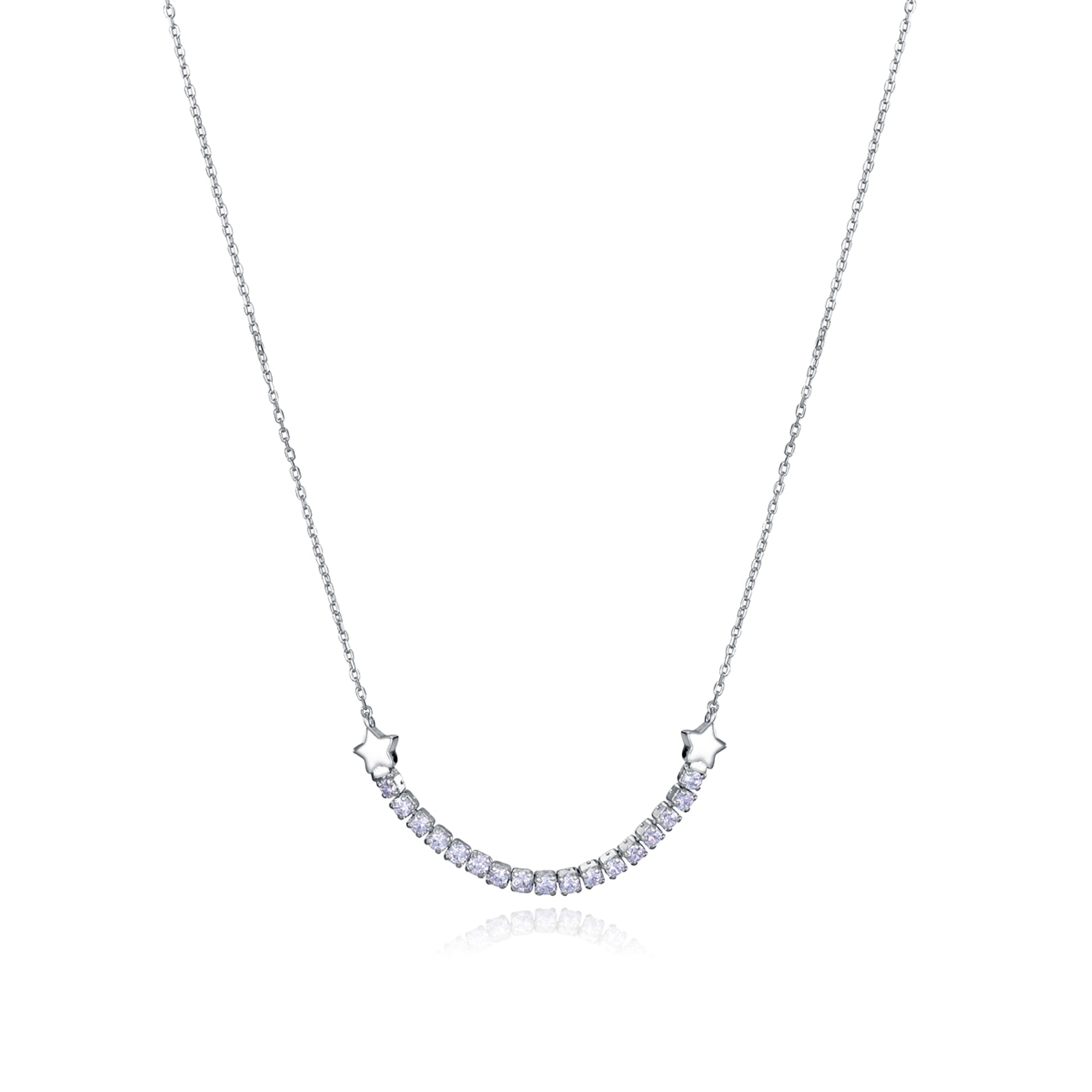 Halskette aus rhodiniertem Sterlingsilber mit weißen Zirkonen, Länge 42 + 3 cm Verlängerung