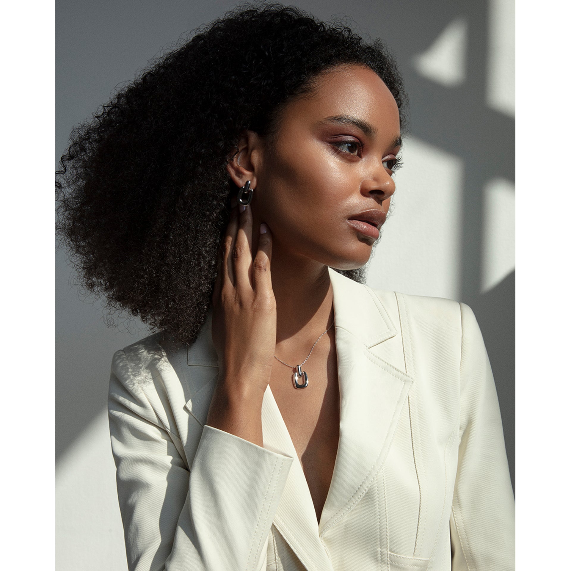 Klassische Halskette aus rhodiniertem Sterlingsilber mit Zirkonanhänger und zwei Creolen