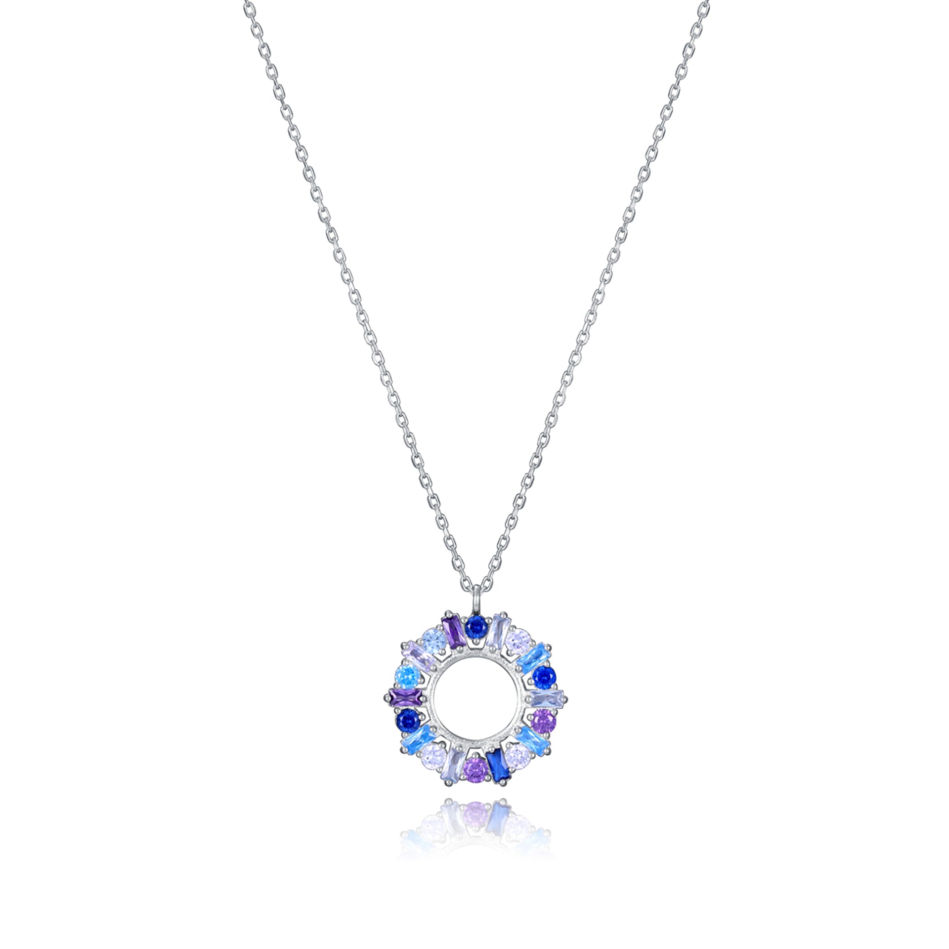 Elegante Halskette aus rhodiniertem Sterlingsilber mit Creolenanhänger mit farbigen Zirkonen