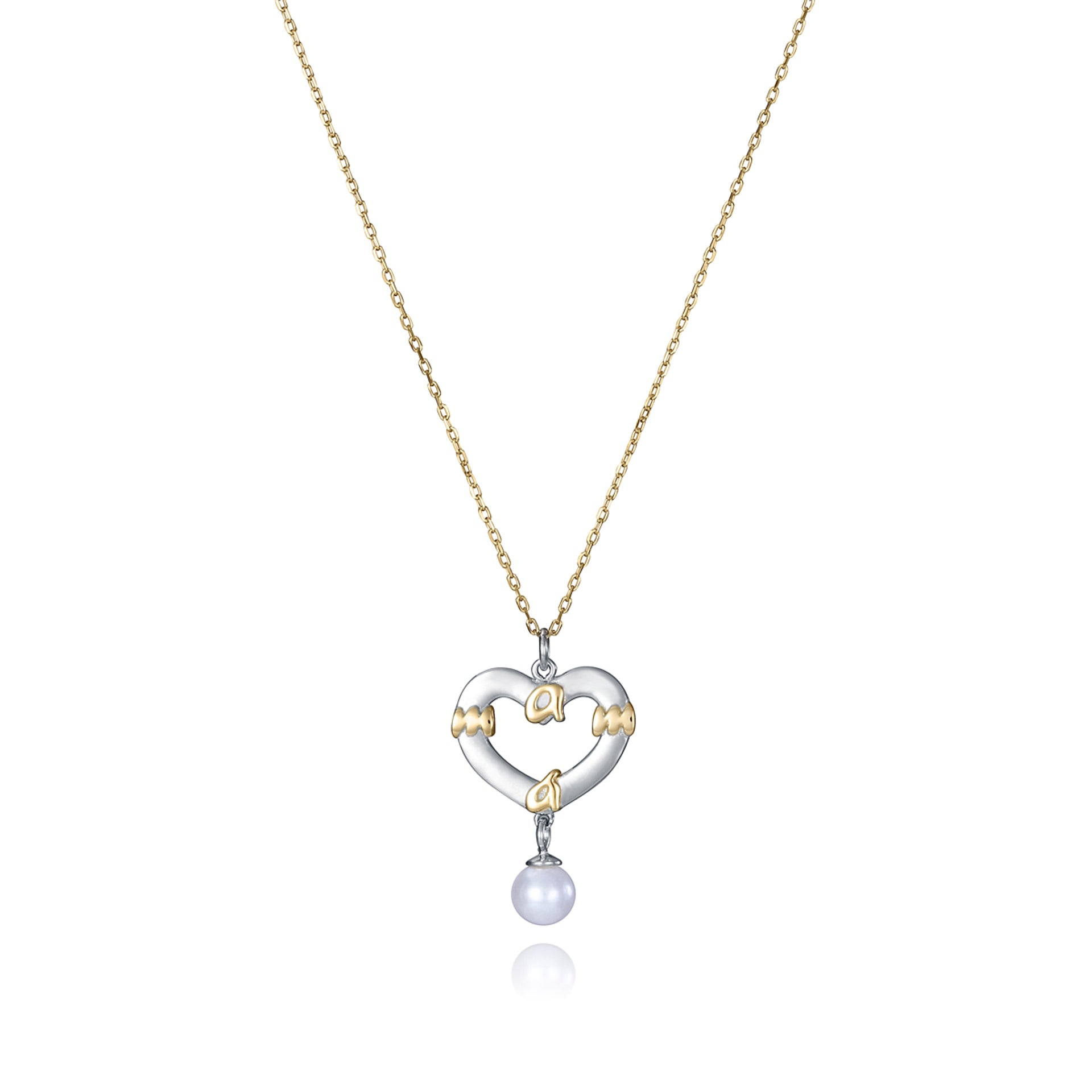 Halskette aus vergoldetem Sterlingsilber mit vergoldetem und rhodiniertem herzförmigem Anhänger