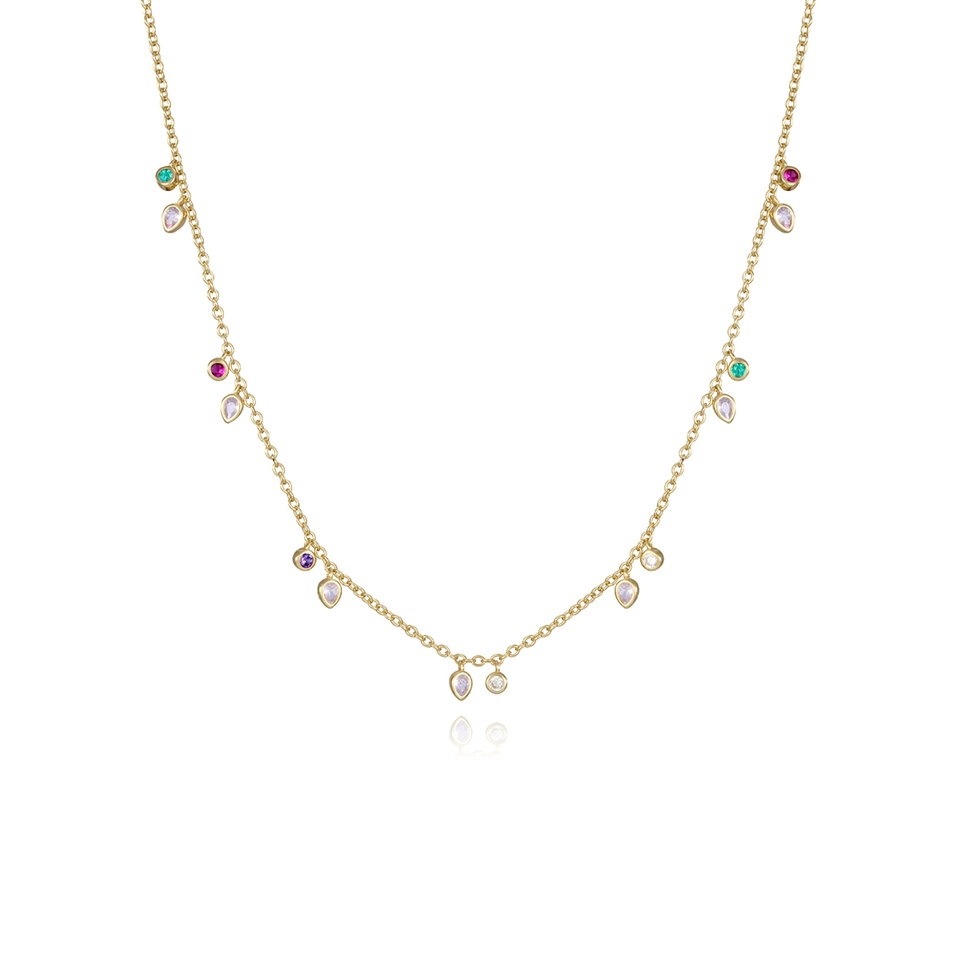 Halskette aus vergoldetem Sterlingsilber mit farbigen Zirkonen