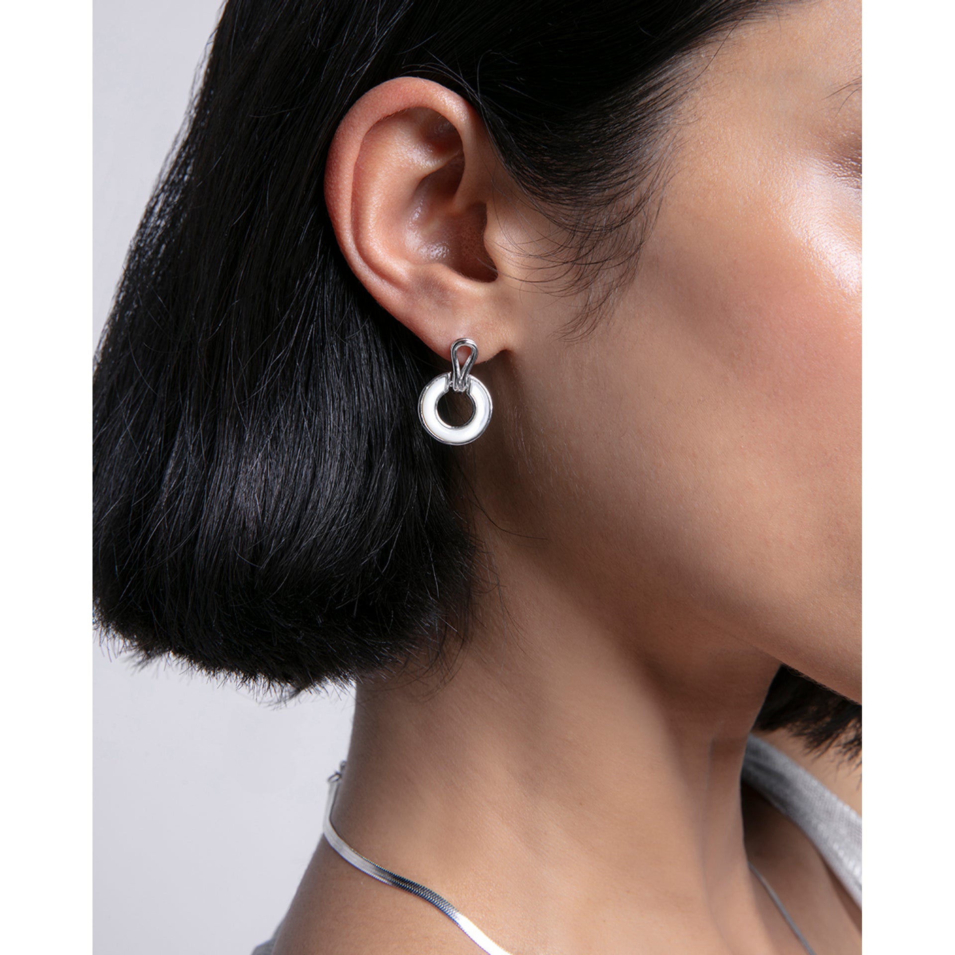 Klassische Halskette und Creolenanhänger aus rhodiniertem Sterlingsilber mit Zirkonen und Creolen