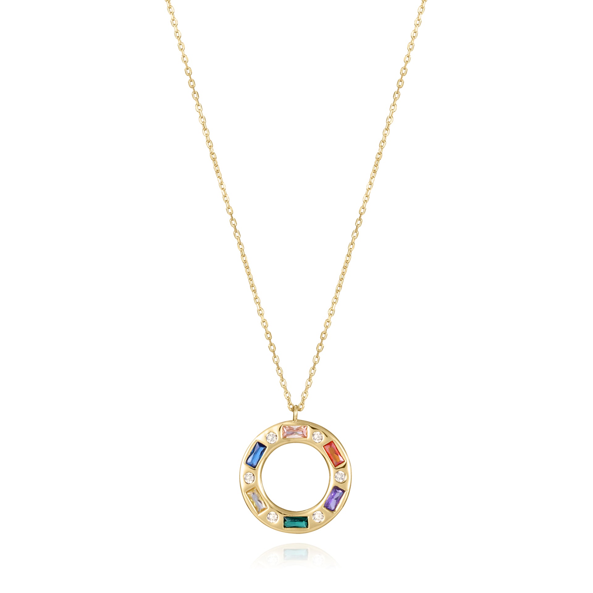 Halskette und Anhänger aus vergoldetem Sterlingsilber mit farbigen und weißen Zirkonen