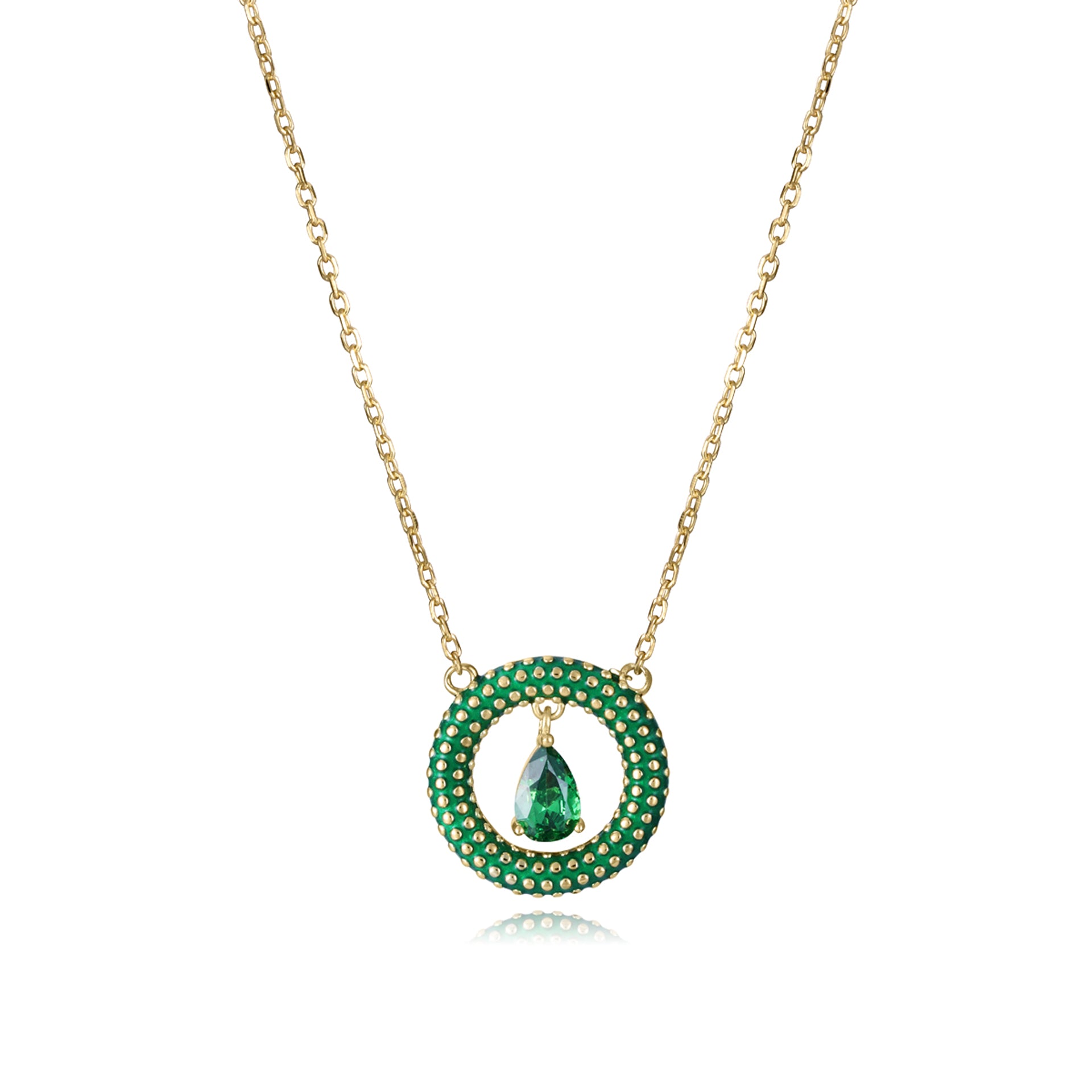 Halskette aus vergoldetem Sterlingsilber mit drei grünen Kristallen