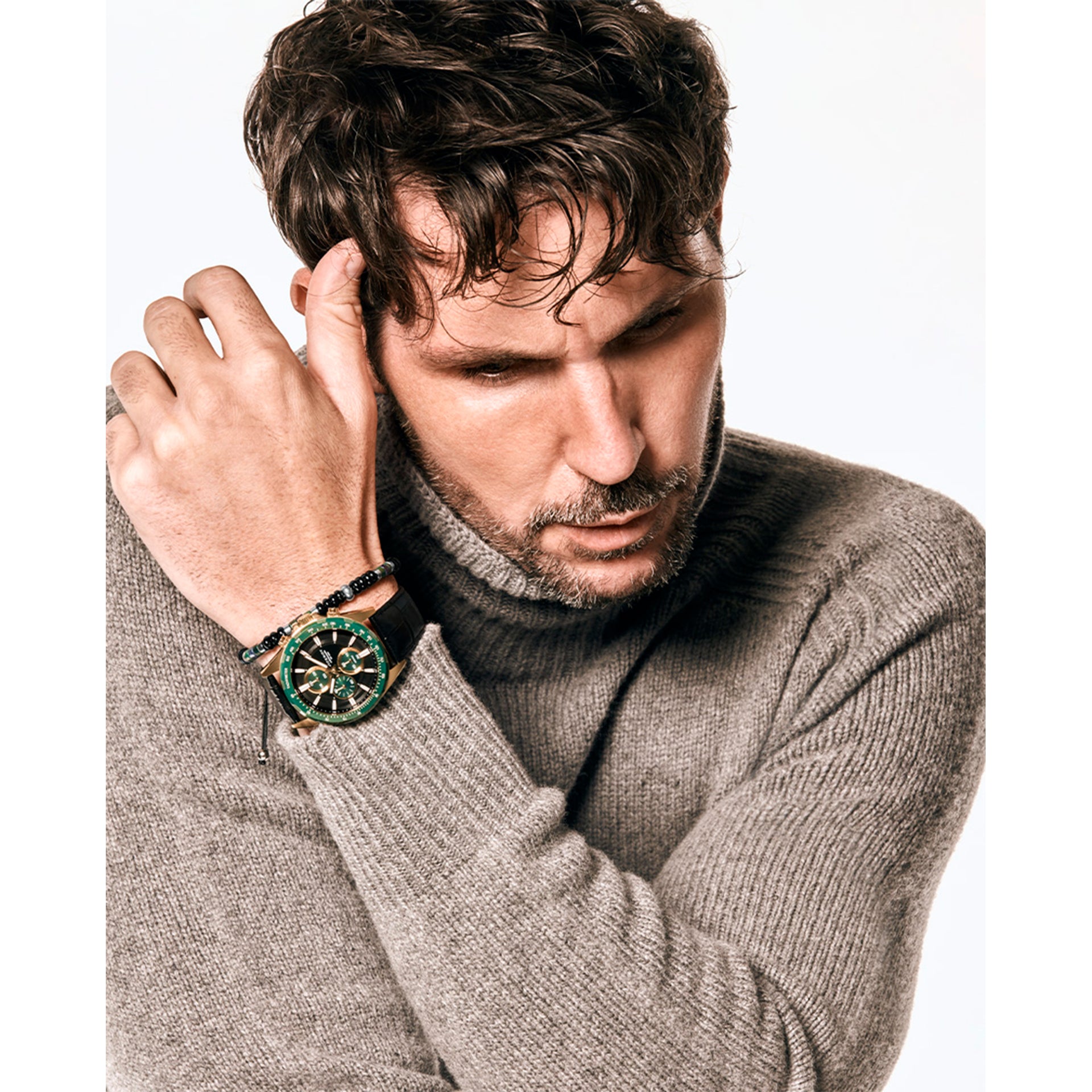 Herrenuhr aus Stahl mit grünem Zifferblatt und Quarzwerk