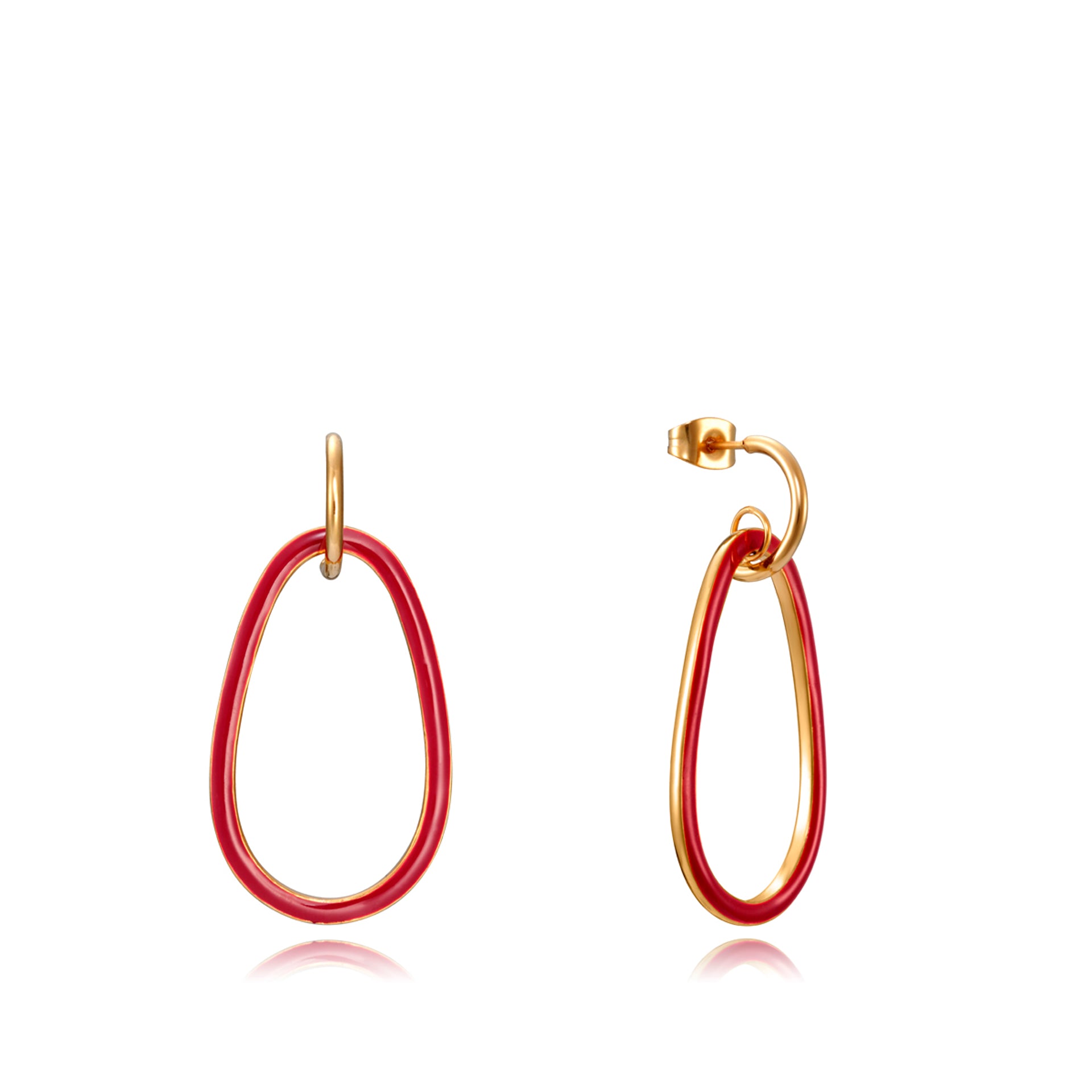 Pendientes Air de acero IP dorado y esmalte rojo