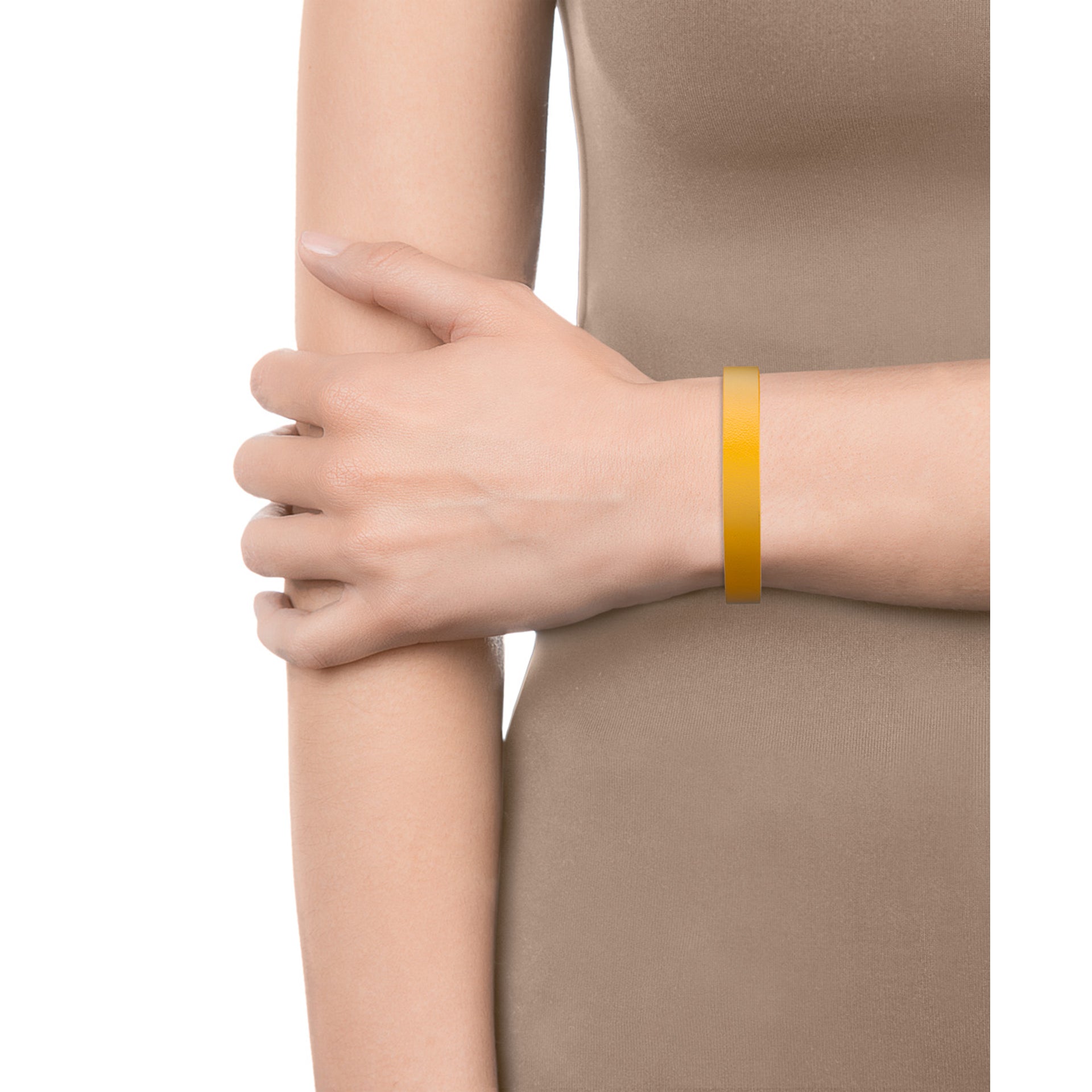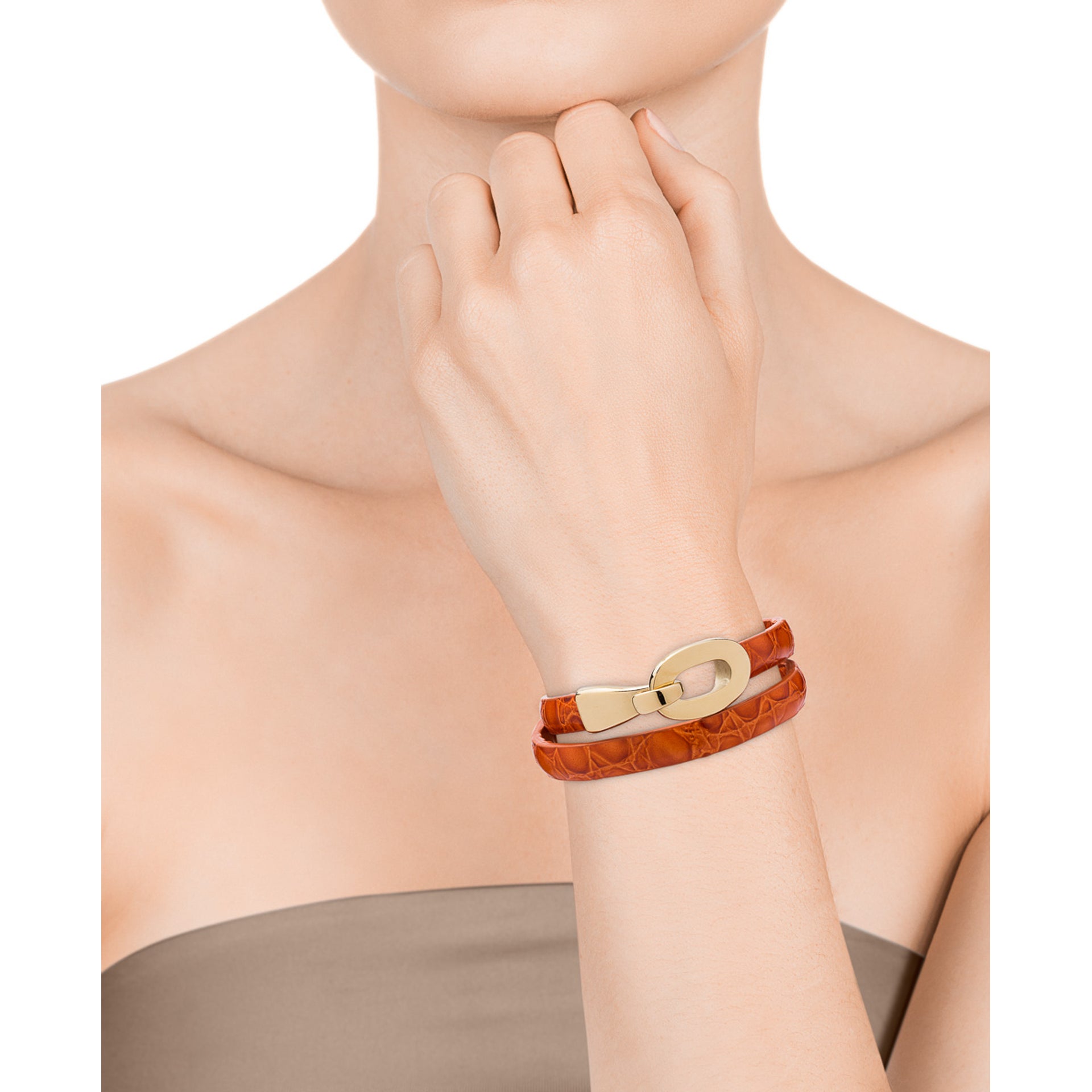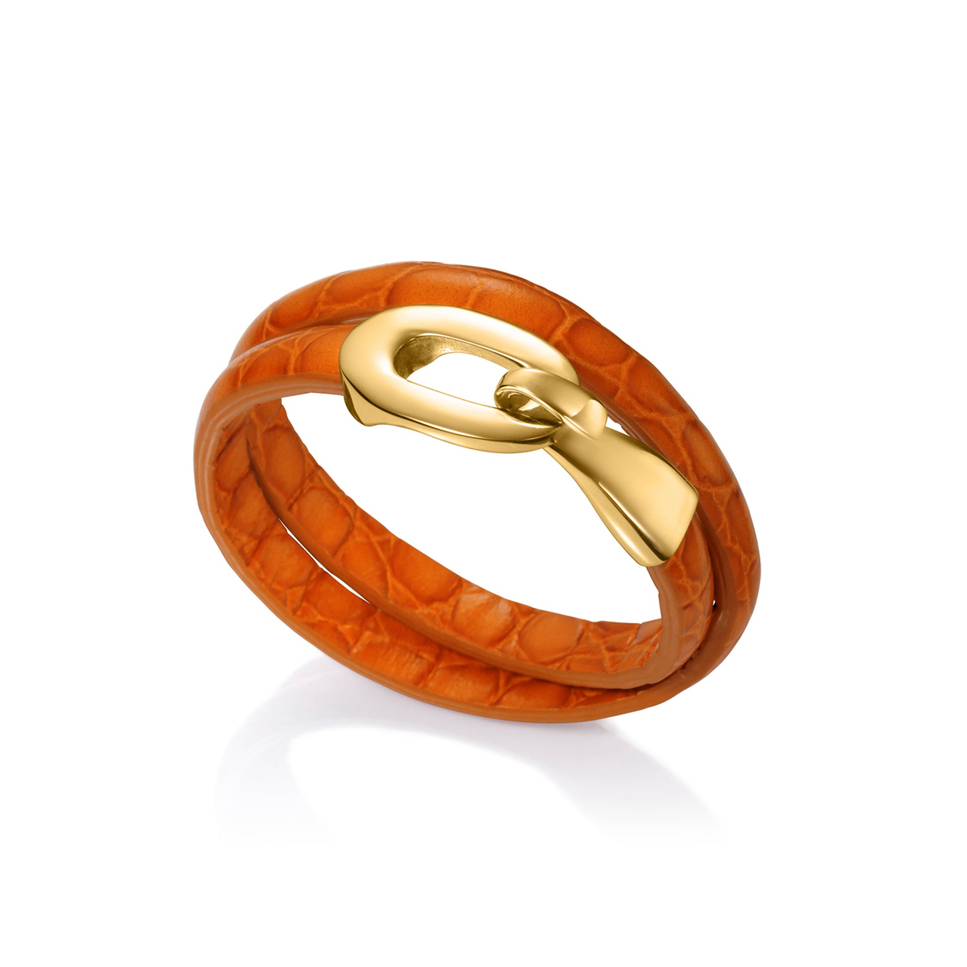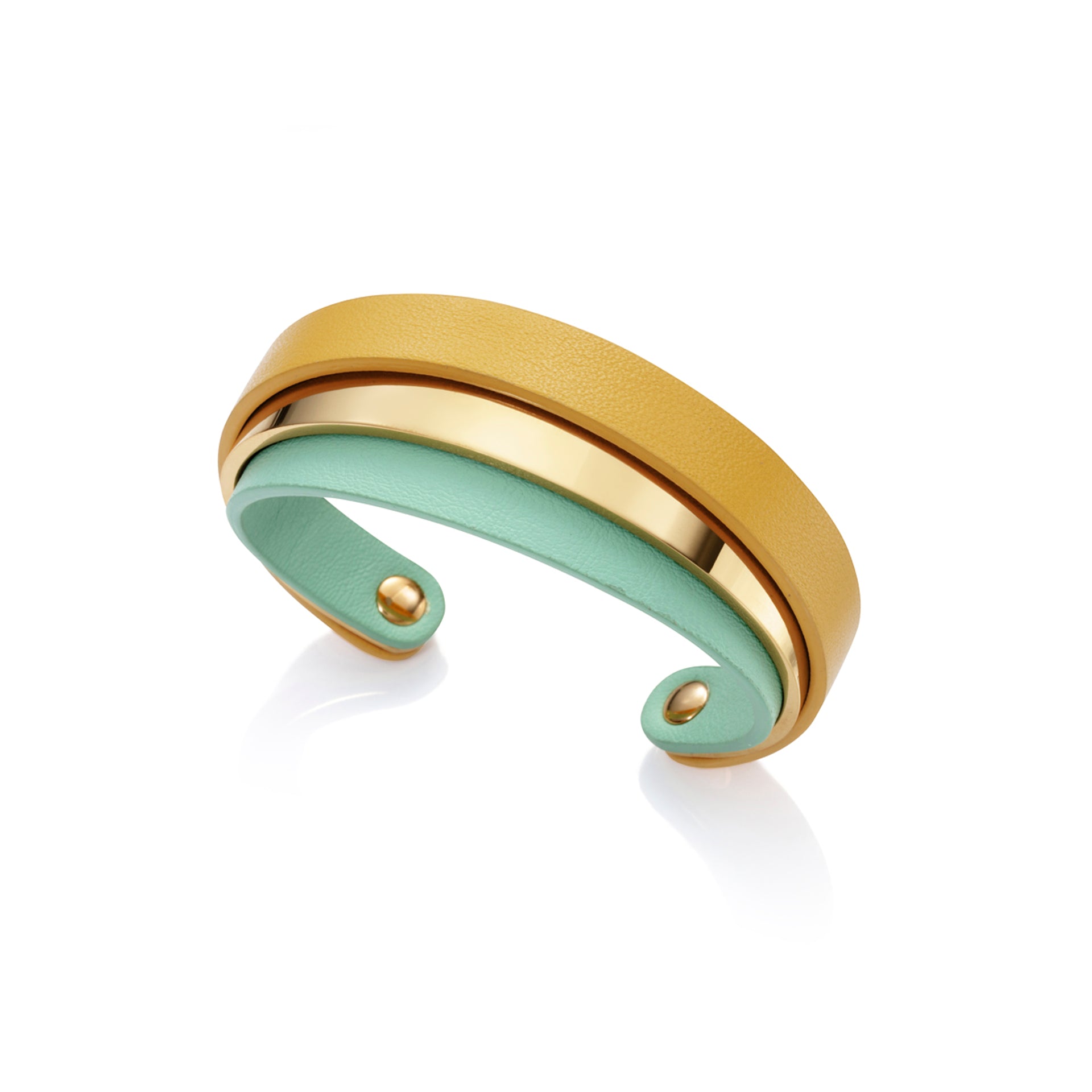 Brazalete Air de acero dorado y piel doble