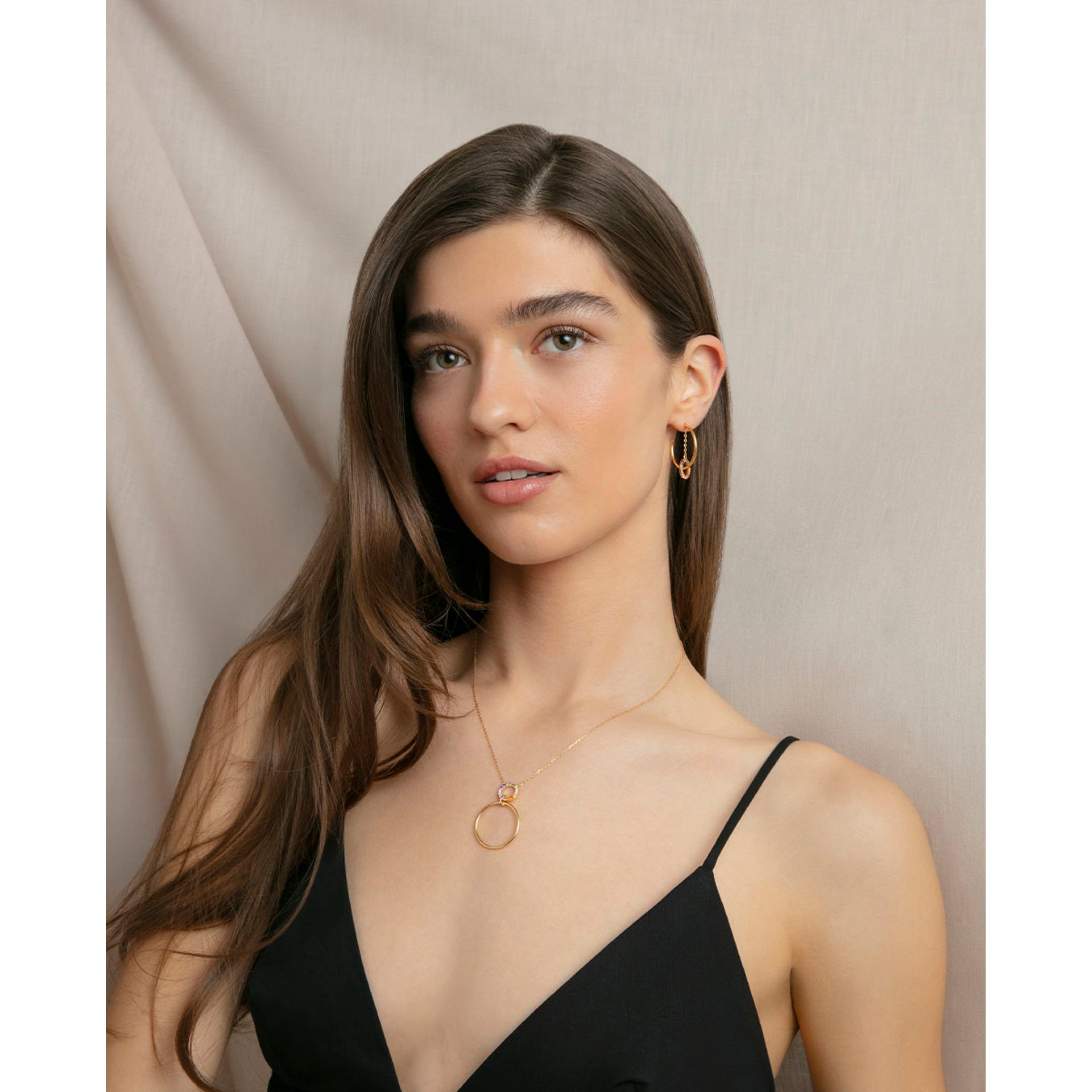 SHOP THE COLLECTIONDoppelte Creolen aus Stahl in Gold-IP und Schwarz-IP, offene Kollektion Laura Escanes
