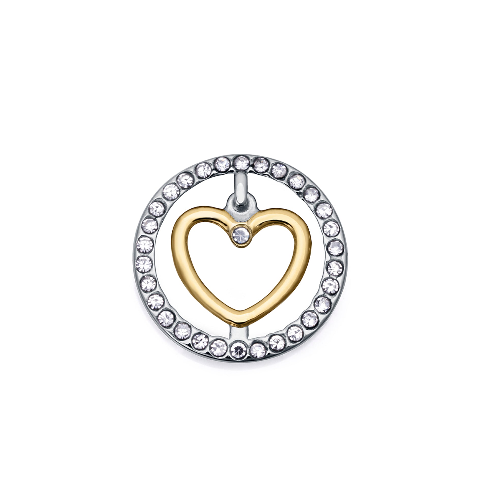 Schickes Stahlmotiv mit Herz aus goldenem Ip und weißen Zirkonen