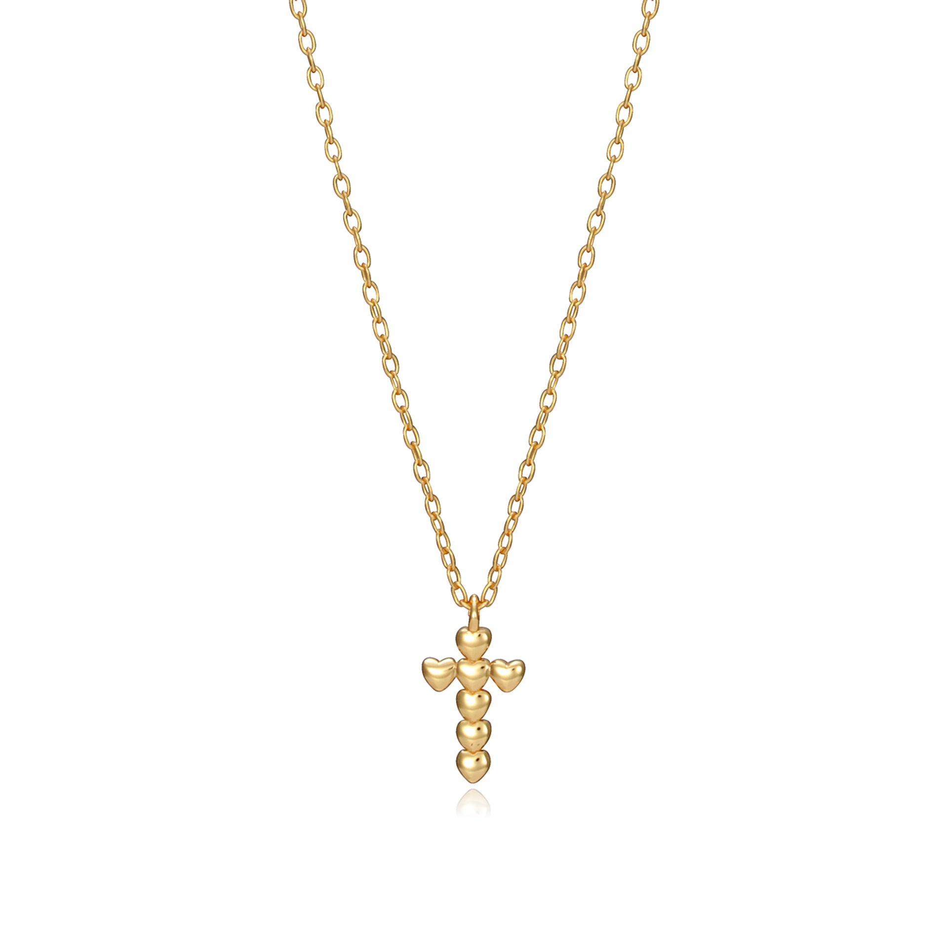 Süße silberne Mädchenhalskette mit Vergoldung und Herzkreuz