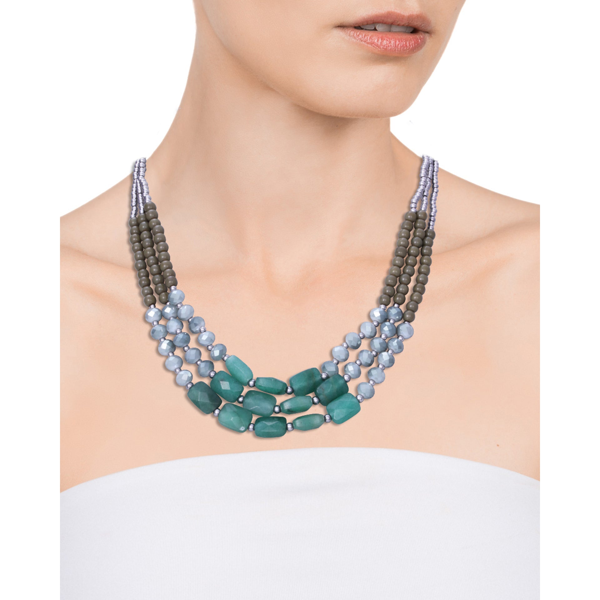 Schicke Halskette aus Stahl mit Aventurin, Jade und Steinen