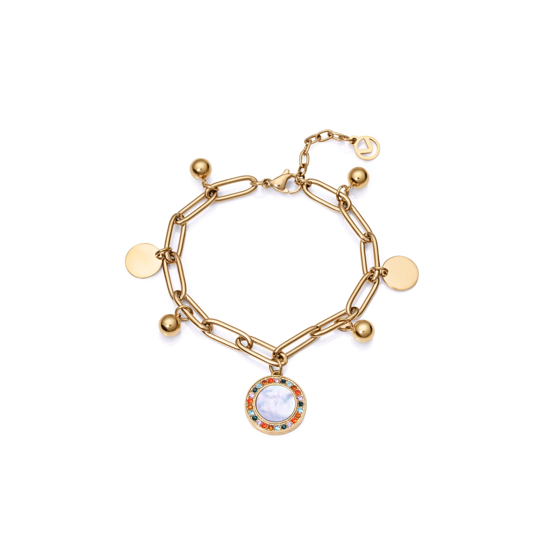 Schickes Stahlarmband in Gold Ip mit Anhängern und Zirkonen