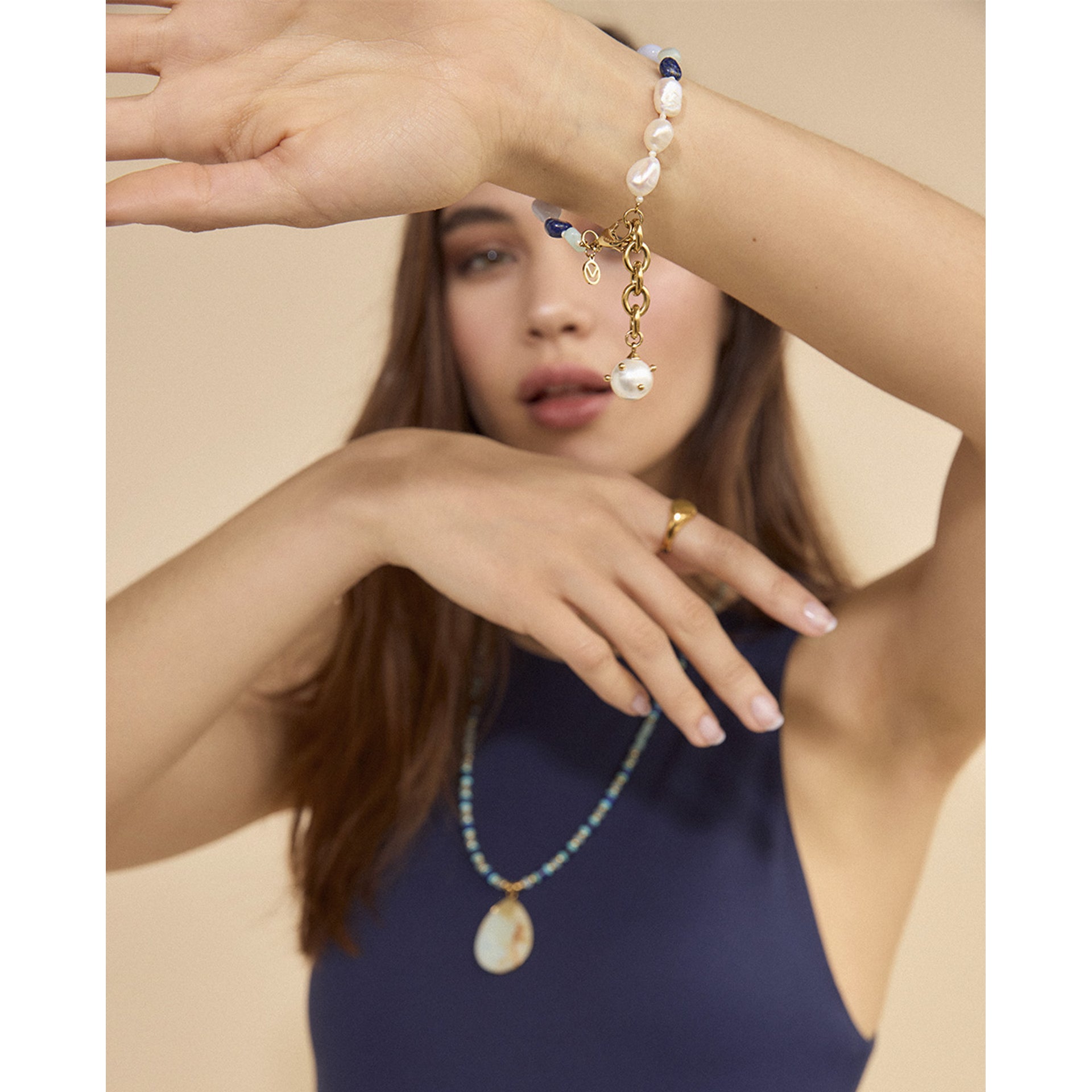 Vergoldete Halskette aus Sterlingsilber mit grünen Zirkonen und einem Perlmuttanhänger