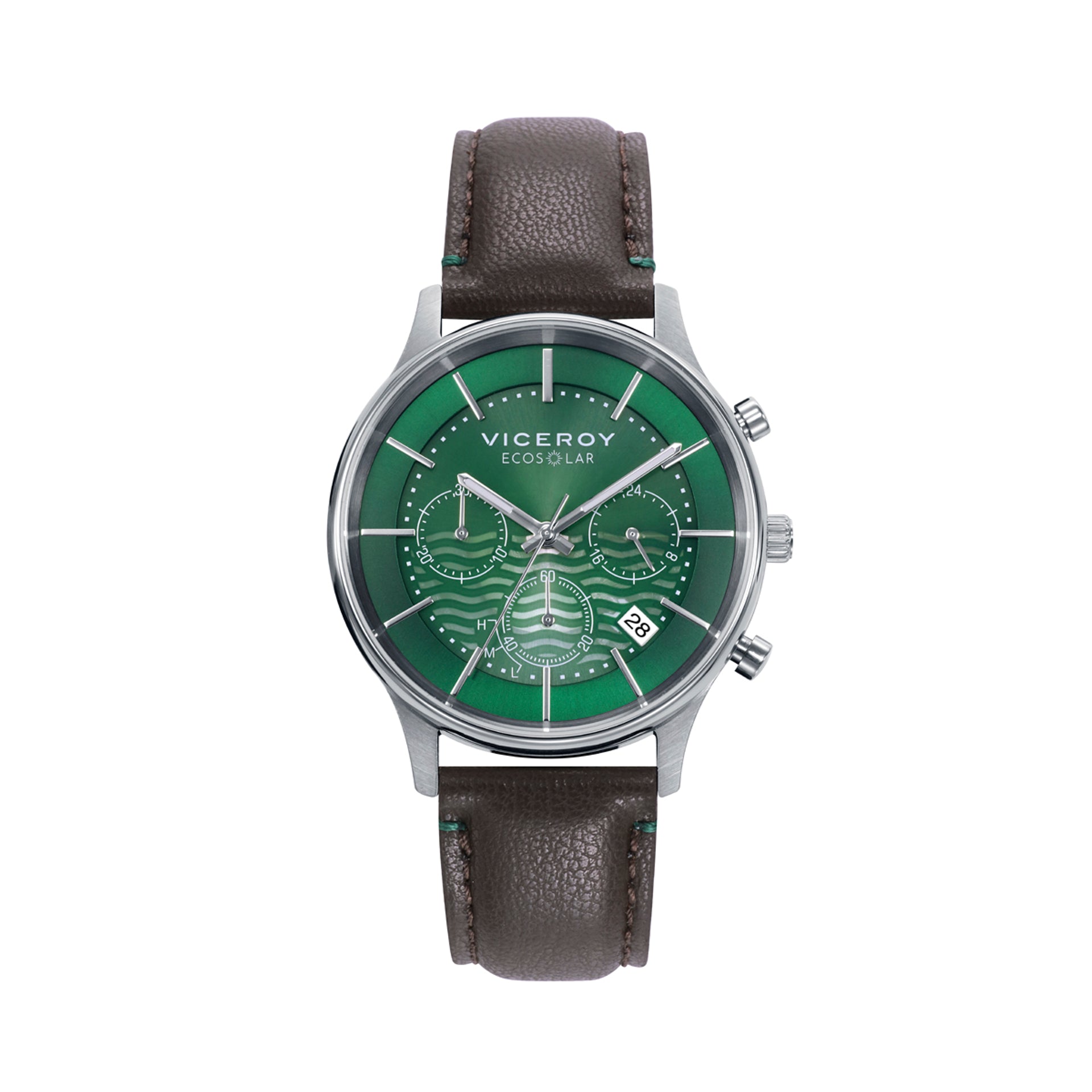 Herrenuhr aus Stahl mit grünem Zifferblatt und Quarzwerk
