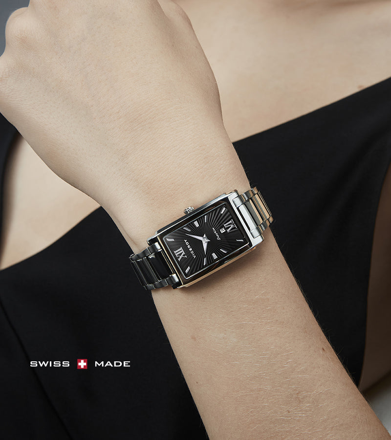 El espíritu más sofisticado de la colección toma forma en este modelo de líneas rectangulares, una pieza que rinde homenaje a la elegancia clásica con un enfoque contemporáneo. Su diseño estilizado y distintivo lo convierte en un refinado símbolo de estilo, pensado para quienes buscan un reloj único, con presencia y un carácter verdaderamente exclusivo dentro de la colección Swiss Made.