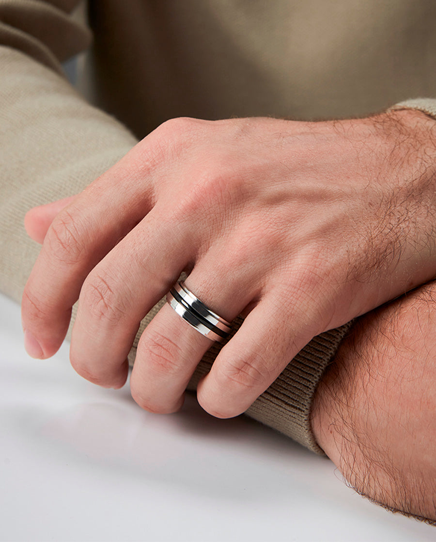 Herrenring aus Magnumstahl mit zwei schwarzen Streifen