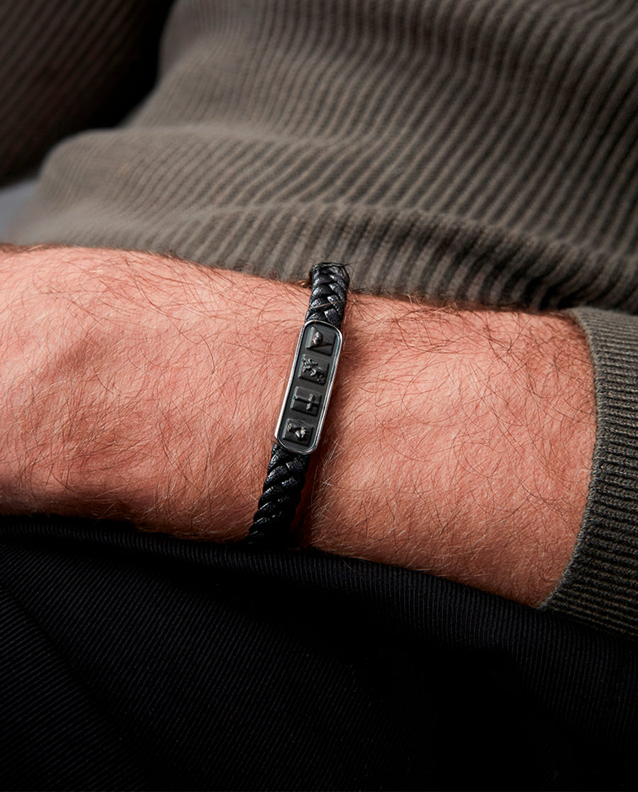 Magnum Herrenarmband mit Stahlplatte und schwarzem Leder